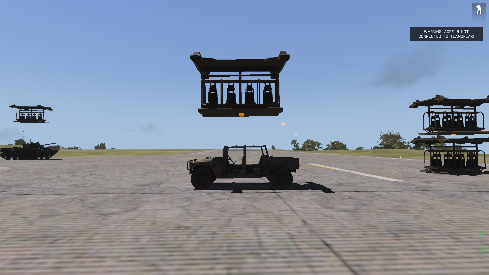 | Steps To Reproduce | 1. Place down an M998 in the editor 2. Load in and look at the M998 3. Run the code below from the developer console (pause menu) Code: _vehicle = cursorTarget; _extension = createVehicle ["Land_Pod_Heli_Transport_04_bench_F",[0,0,50],[],0,"CAN_COLLIDE"]; _dimensions = boundingBoxReal _vehicle; _offset = [0,0,((_dimensions select 1) select 2) + ((boundingCenter _extension) select 2)]; _extension attachTo [_vehicle,_offset]; | ||||||||