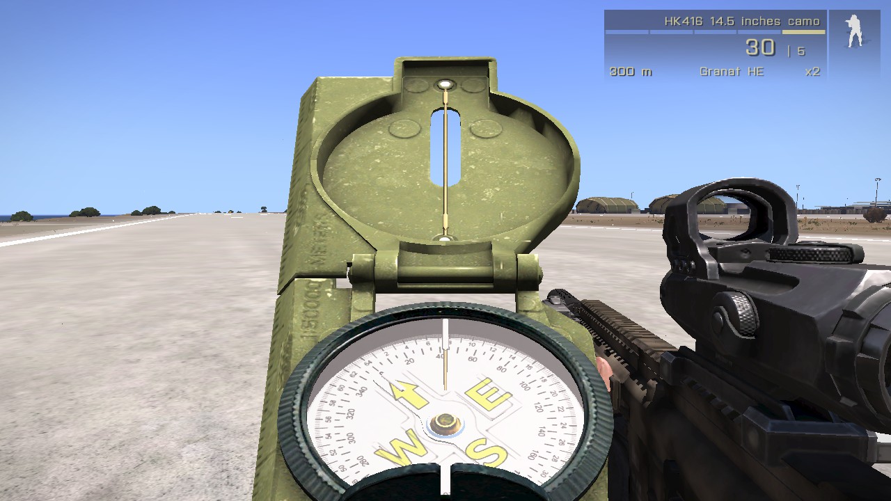 If separate mod is only option, then please do it this way. Here are some examples of "additional/replacement" compasses: AFTP CompassFix v2.0 http://www.armaholic.com/page.php?id=24412 [^] ADO Boussole Silva compass https://www.youtube.com/watch?v=n7Xdma68vV8 [^] IFA3 WW2StyleCompassAndWatch http://steamcommunity.com/sharedfiles/filedetails/?id=1088249834 [^] ARMA2 versions (works on map as well): http://www.armaholic.com/page.php?id=14602 [^] http://www.armaholic.com/page.php?id=8193& [^] http://www.armaholic.com/page.php?id=3231& [^] |