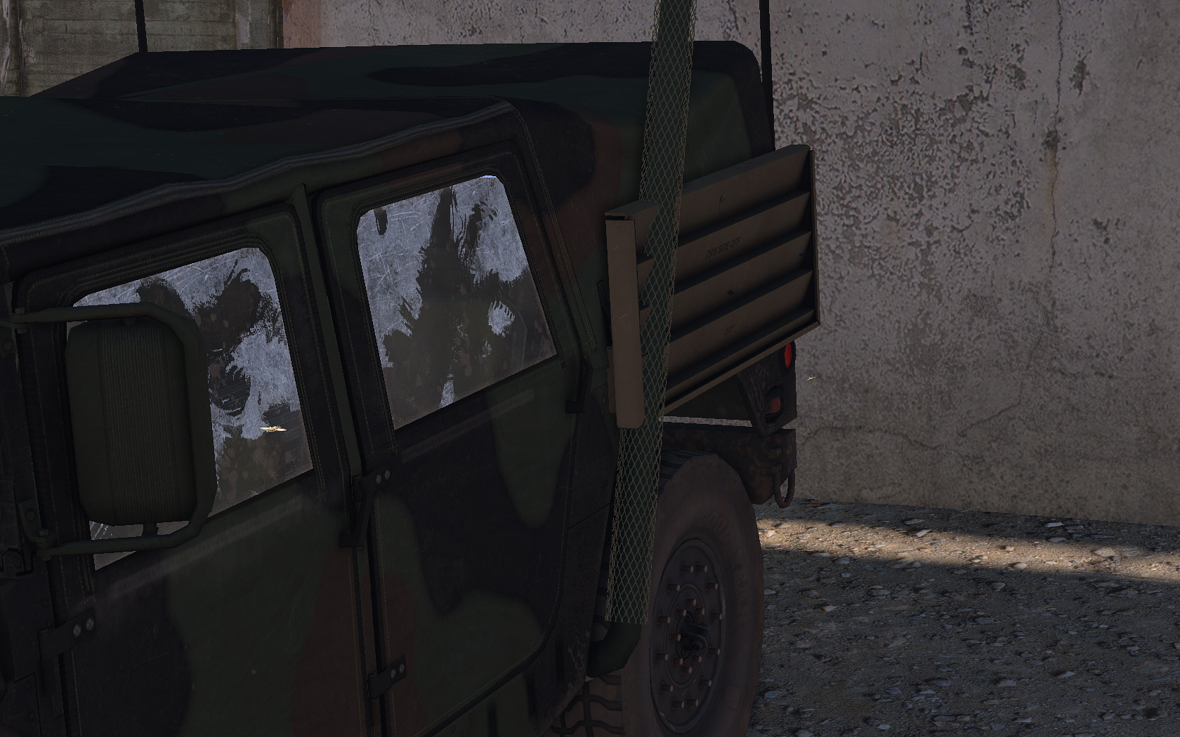 | Description | Snorkel clips through, left above rear axle, combat identification panel on M1123 HMMWVs. USMC Desert: M1123 (2D/Snorkel) - rhsusf_m998_d_s_2dr_fulltop M1123 (4D/Snorkel) - rhsusf_m998_d_s_4dr_fulltop USMC Woodland: M1123 (2D/Snorkel) - rhsusf_m998_w_s_2dr_fulltop M1123 (4D/Snorkel) - rhsusf_m998_w_s_4dr_fulltop | ||||||||
