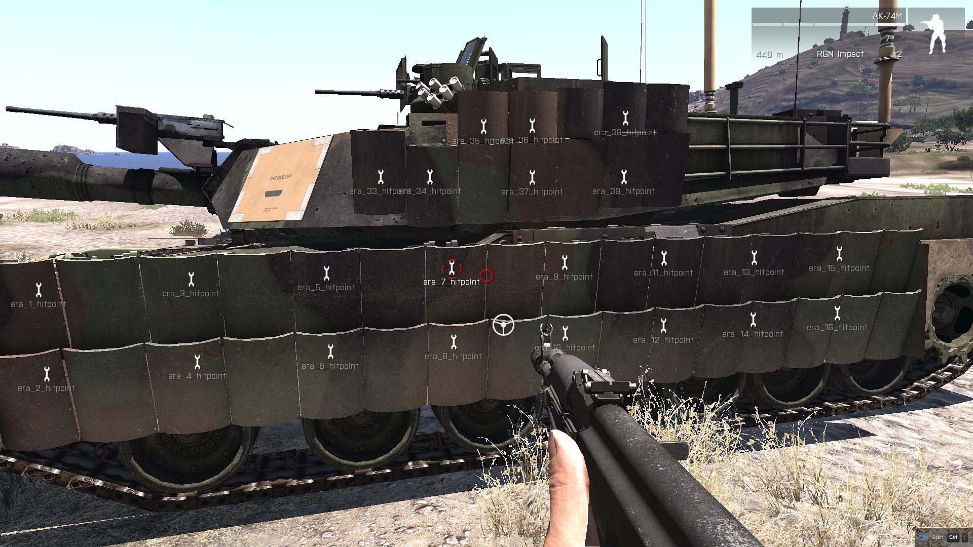 TUSK I maybe yes, but tusk II not. It seems to be depend on projectile - detonating era on all tanks with rpg-26 from side (T-72B'85, Abrams Tusk 1, Tusk 2) seems to be very random - T-72 gets destroyed very often by RPG-26 (penetrating ERA, RHA) and everytime ERA is destroyed on turret and on hull, while on TUSK 2 only 2 era block get destroyed (hull only). Tusk I era got allways 6 blocks blow up. So era on T-72 and Tusk I need little, very little tweak. RPG-26 cannot destroy tank with era. On video i didnt destroyed it only once, - once per 5 trials. https://youtu.be/VcspQaoHCHo [^] |