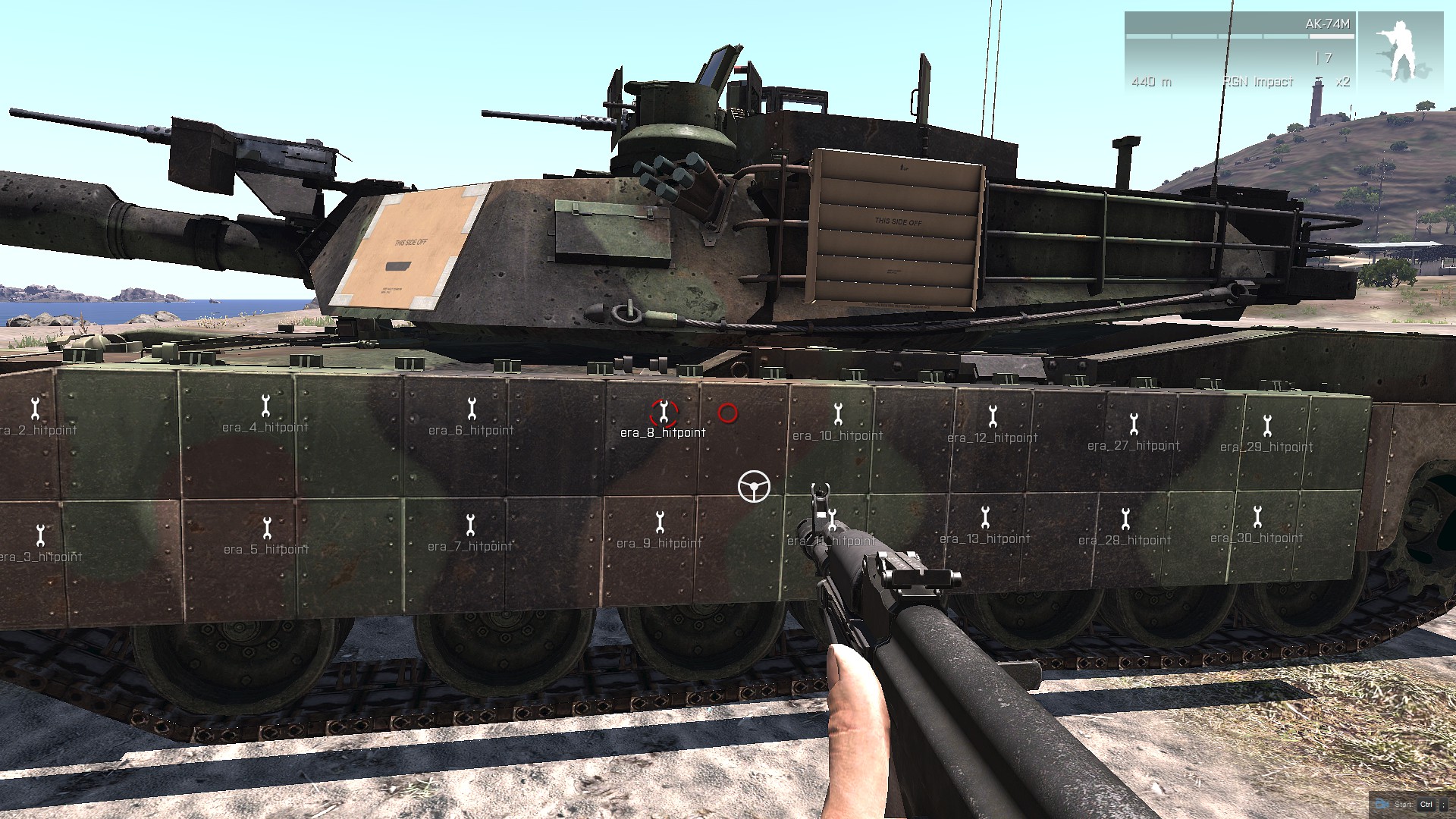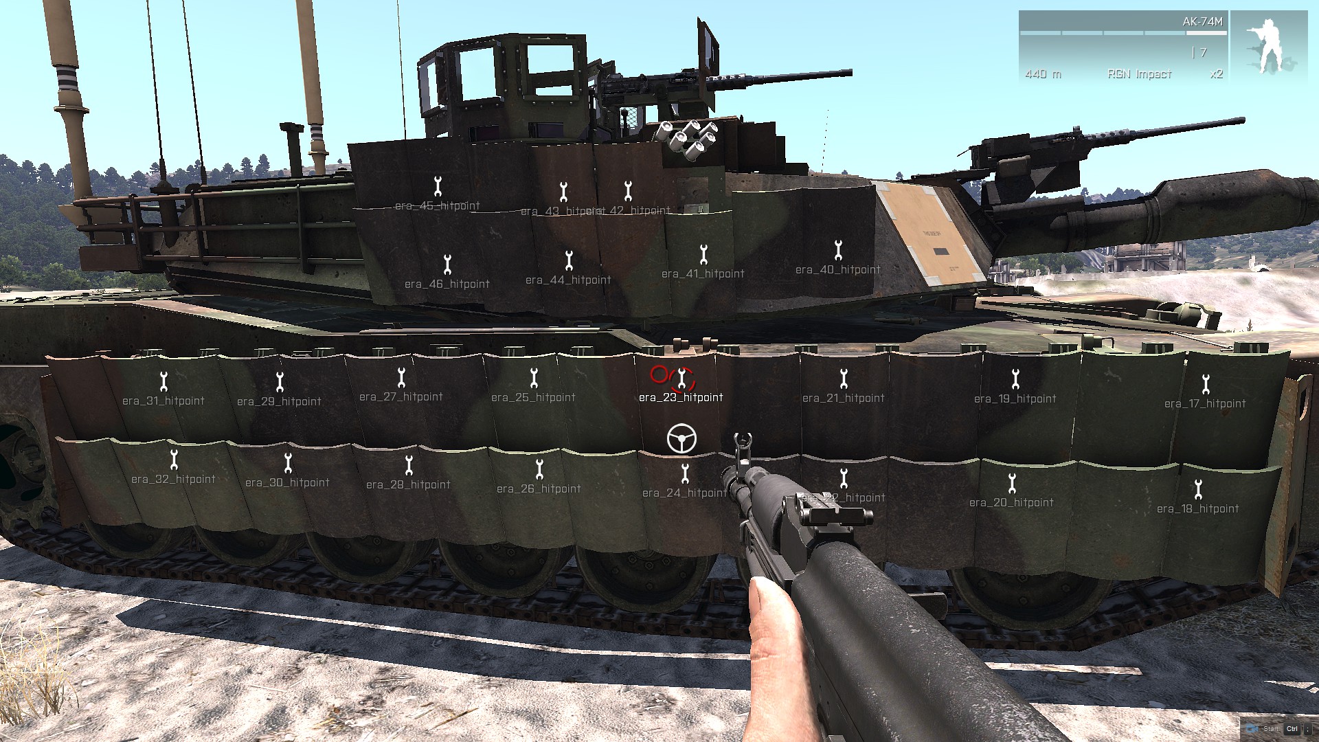 TUSK I maybe yes, but tusk II not. It seems to be depend on projectile - detonating era on all tanks with rpg-26 from side (T-72B'85, Abrams Tusk 1, Tusk 2) seems to be very random - T-72 gets destroyed very often by RPG-26 (penetrating ERA, RHA) and everytime ERA is destroyed on turret and on hull, while on TUSK 2 only 2 era block get destroyed (hull only). Tusk I era got allways 6 blocks blow up. So era on T-72 and Tusk I need little, very little tweak. RPG-26 cannot destroy tank with era. On video i didnt destroyed it only once, - once per 5 trials. https://youtu.be/VcspQaoHCHo [^] |