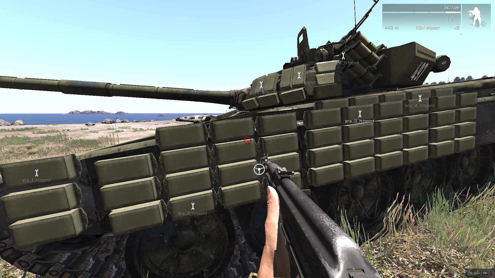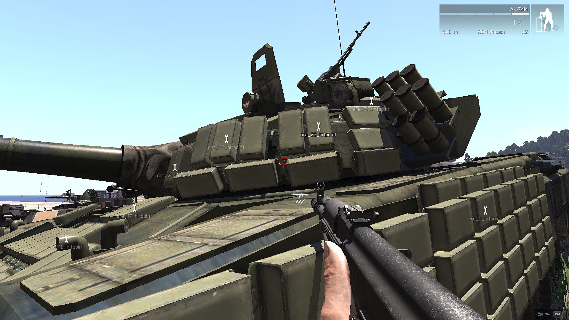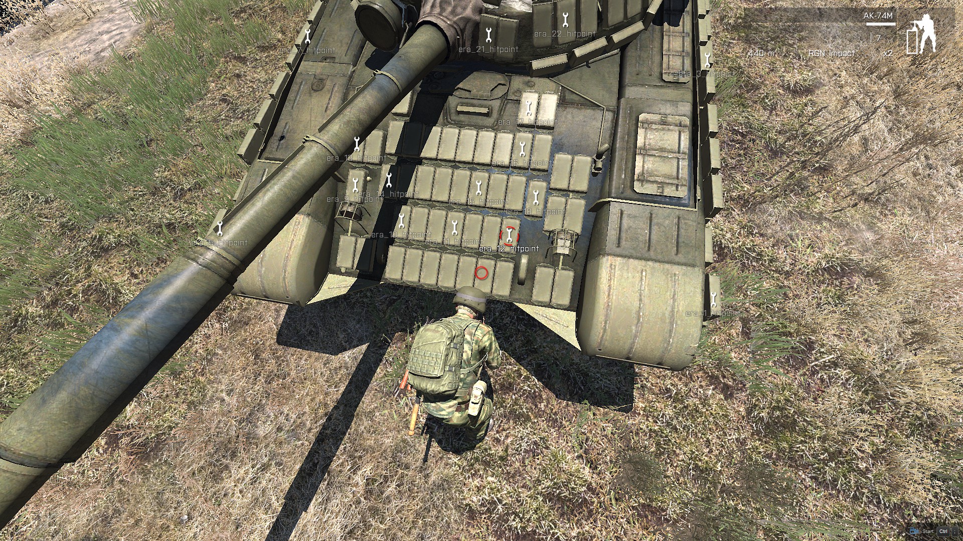 I was looking for this ticket, but didnt know its closed. Maybe someone can give us a light? While we can clearly see, the RPG 26 rocket hits the T-72 in the side and detonate ERA BOTH on hull and on turret which should not happen, then the same rocket hit TUSK II and detonate era only on hull in smaller number this isnt the same ammount of exploded era, isnt it? More, there is not right armor for era, i can destroy T-72 in 7/10 tests when shoting side era on hull. Its happen also on T-90 with Kontakt-5 ERA which should not happen. https://youtu.be/NkAzrt0O_R4 [^] |