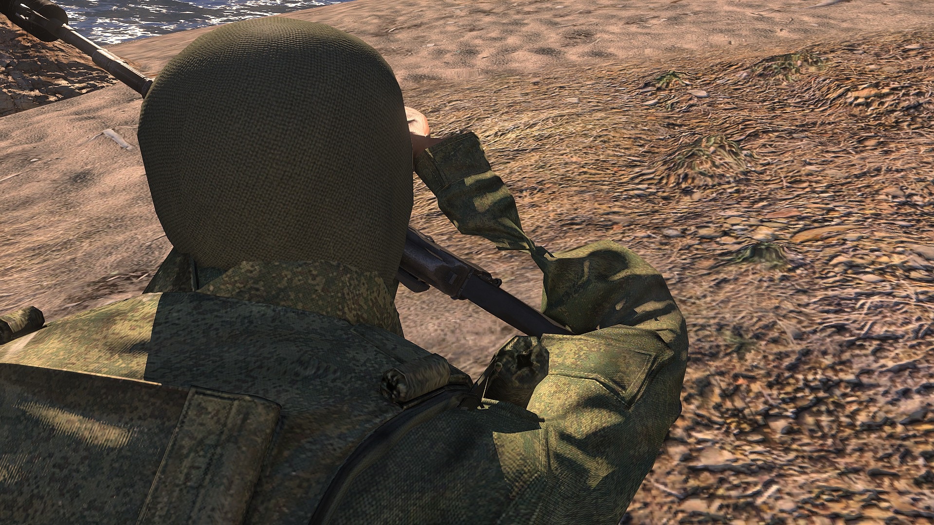 DescriptionReloading an AK weapon (AK-74M, AK103, AKM, AKMS) while prone will result in the soldier's right arm getting glitched during the reload animation for a split second. Just look at the attached screenshot.