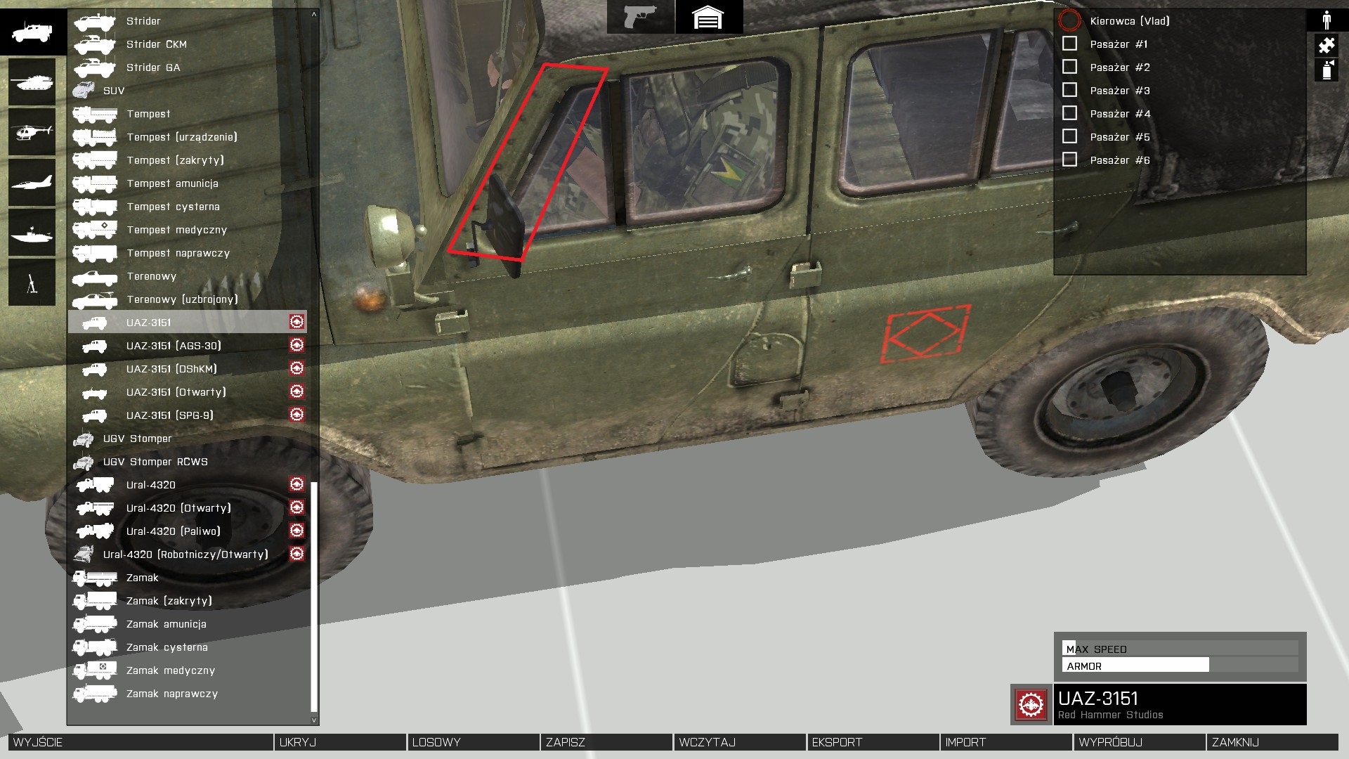 DescriptionThere is a bug in UAZ, on the driver doors window.