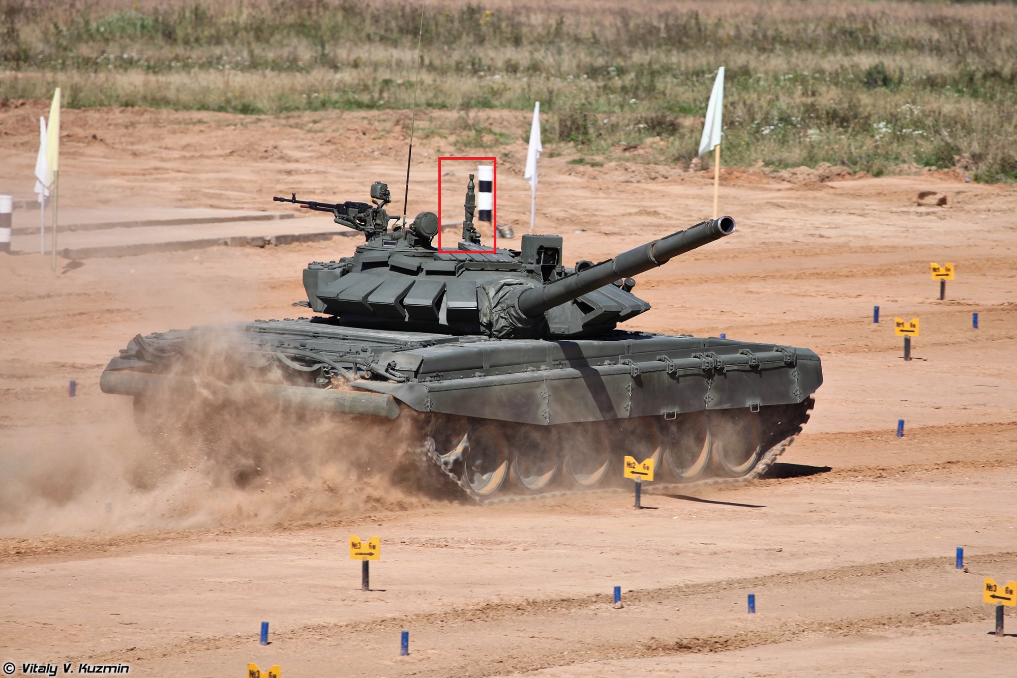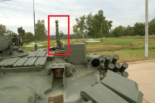 | Description | Штырь датчика ветра ДВЕ-БС на башне является одним из основных визуальных отличий от Т-72 образца 1989 года. |