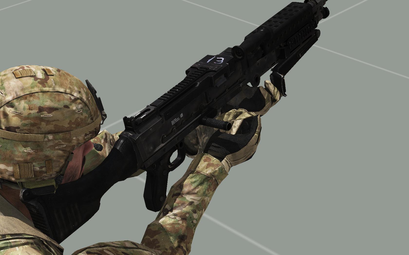 Some issues are bound to happen due to using the vanilla reload animation which isn't as compatible with the M240 model (It still works good though!) just it wont be perfect which is to be expected. I have noticed some animations issues however to do with the M240's when deployed on the ground where the hand levitates off the top of the stock. In first person it creates the problem of view blocking. I have uploaded a picture above because it's probably not worth clogging up the tracker with the issue. |