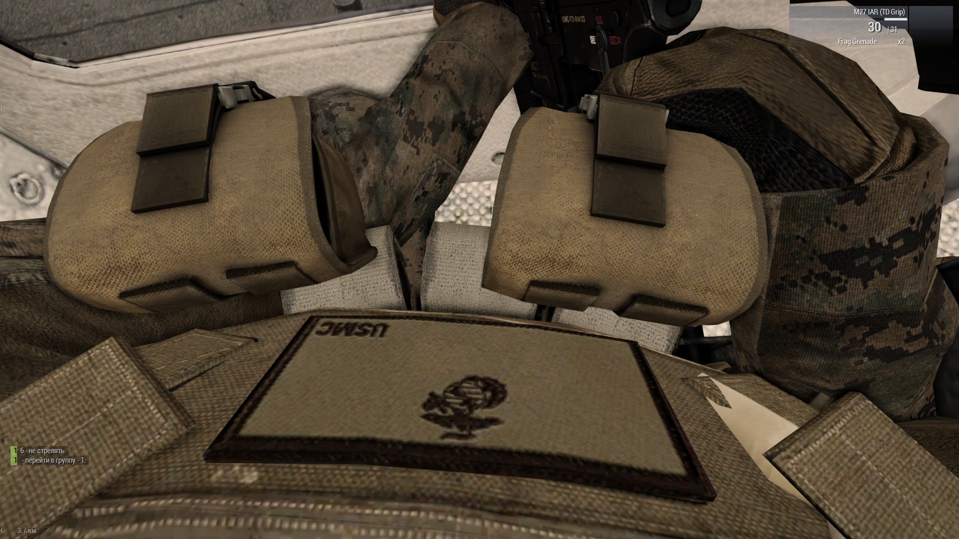 | Description | Подсумки висят в воздухе на жилете SPC (IAR) при сидении в вертолете UH-1Y на месте пассажира. |