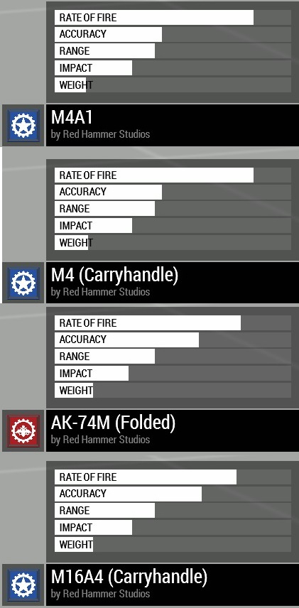 Don't take Arsenals Value Bars for granted, they literally say nothing other than "Look at how fancy we can make the Arsenal look!". The values for the accuracy of both weapons are on point. |