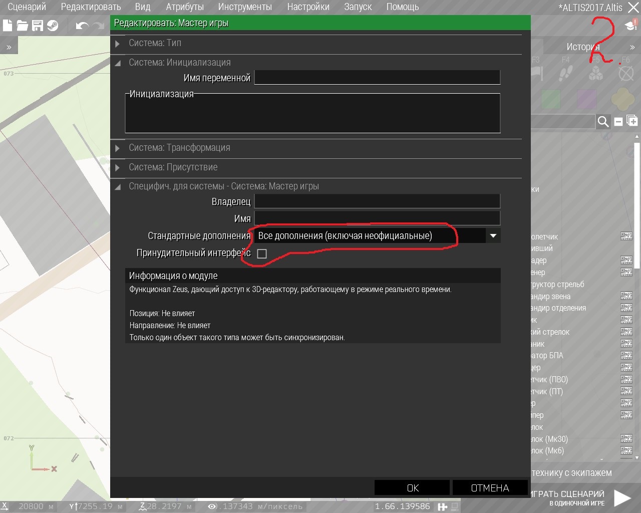 Блоки поставил но проблема остается.Я немного не понимаю как это выделеный сервер. Я создал к примеру миссию в редакторе с модом RHS поставил юнита синхронизировал с модулем ZEUS поставил галочку использовать со всеми адонами и неофицальными,сохранил миссию, экспортировал в одиночную игру, закрыл редактор, зашел в одиночный сценарий нашел то что я экспортировал то есть эту миссию. После чего когда я загрузил миссию все работает тоесть в панели Zeus можно выбирать юниты мода RHS, но после очередного сохраненния этой миссии когда загружаю второй -третий раз мод RHS в понели ZEUS не работает!!!!! отсутствует юниты мода они просто пропадают такое ощущение что при сохранении миссии не сохраняется сам мод RHS и ZEUS его не видет. |