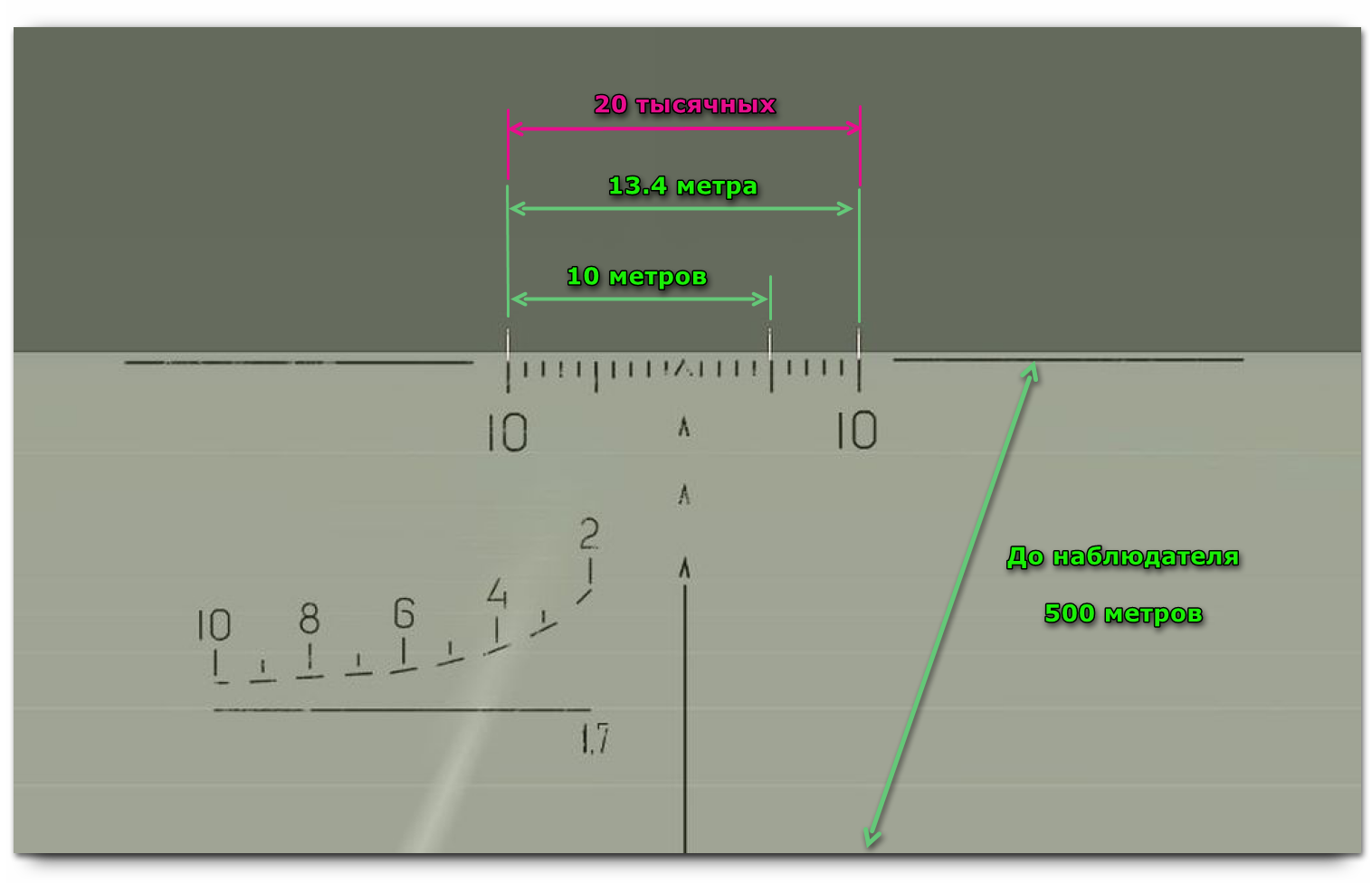 | Description | 1. Одна тысячная в прицеле ПСО-1М равна 1,34 "истинной" тысячной. Если не знать об этом, то при определении дальности до объекта, внесении горизонтальных поправок на ветер и скорость движения цели будут значительные ошибки. На скриншоте видно, что на дистанции 500 метров 20-и тысячным прицела ПСО-1М соответствует расстояние равное 13,4 метра, а должно быть равным 10 метров (из формулы тысячных*) . 2. Дополнительные угольники "пристреляны" не правильно. Например, первый дополнительный угольник "пристрелян" (при установленном зероинге 1000 метров) на 1200 метров, а должен быть на 1100. * формула тысячных: Дц=Рц*1000/КТ - Дц - дистанция до цели - Рц - размер цели (высота или ширина) - КТ - количество тысячных. | ||||||||||||
