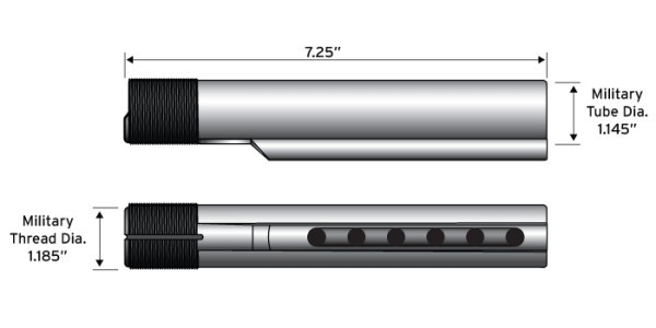 | Description | The buffer tube is modeled incorrectly. The buffer tube isn't a straight tube, it has a narrow piece sticking out of the bottom for the stock to lock into place for each extension length. | ||||||||