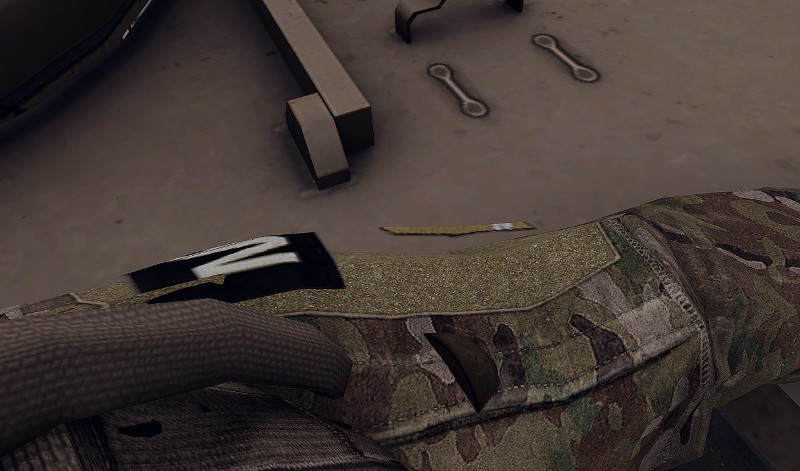 i've made some try but never seen this on SP. it seems to be client side, and happening only on the other players uniform and not to myself. i've also realized that from the other player point of view it not appear glitched (the new uploaded image shows the other player pov (same player, same session) you could clearly see the original american flag on right shoulder) i'll let you know if i'll find other clues |
