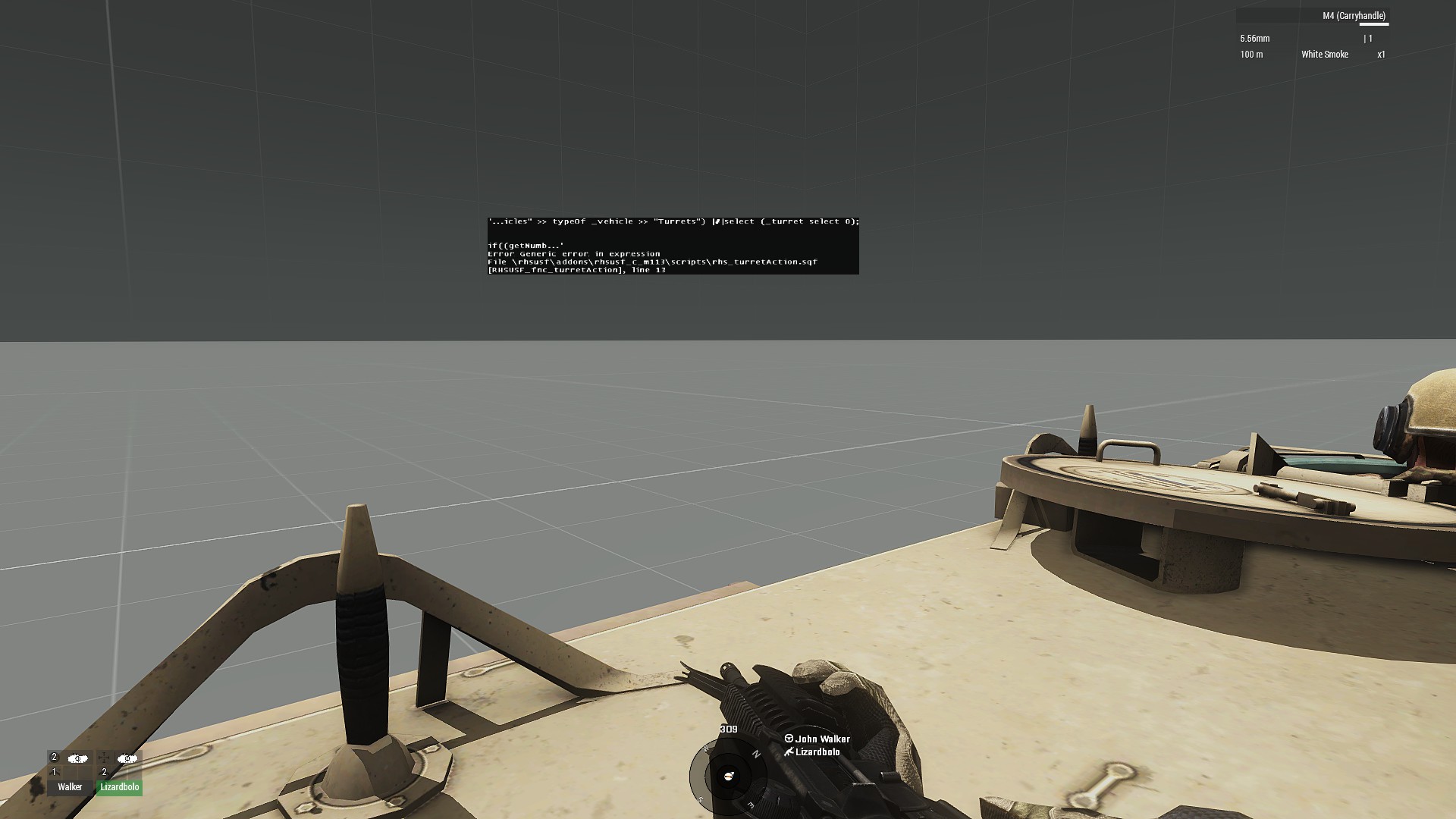 | Description | An rhs_turretAction.sqf text error appears when turning out on board any of M113 APCs. Error apears randomly on positions of Driver, Rear Hatch left and Rear hatch right both with and without crew on board. | ||||||||||||