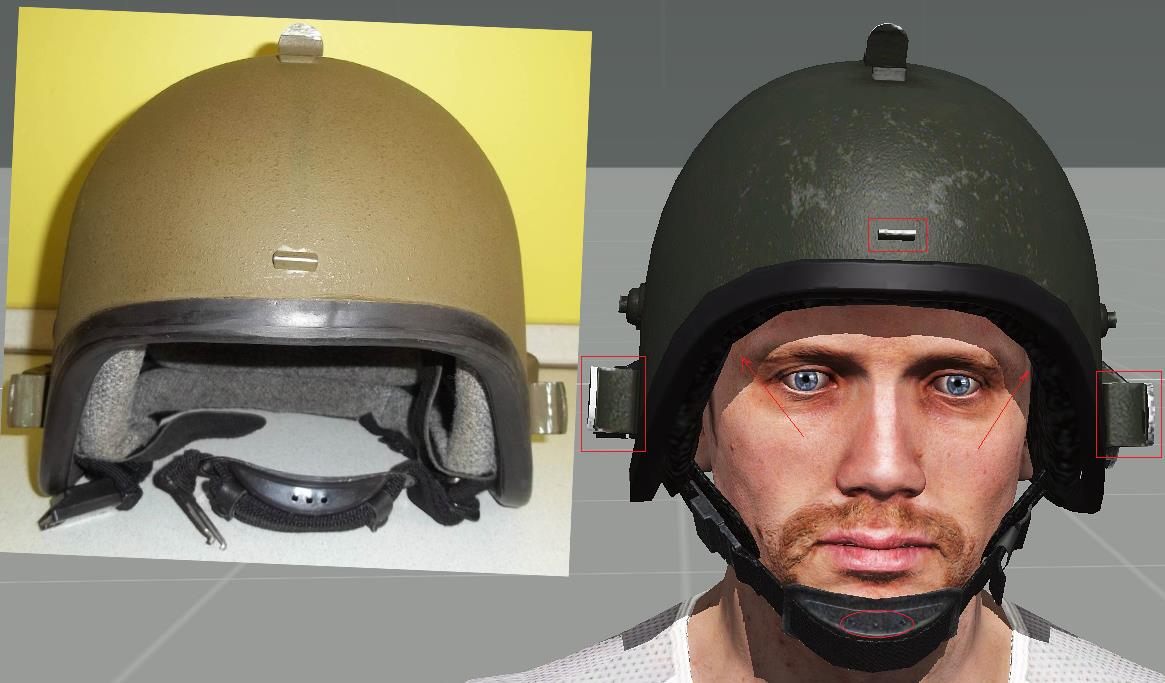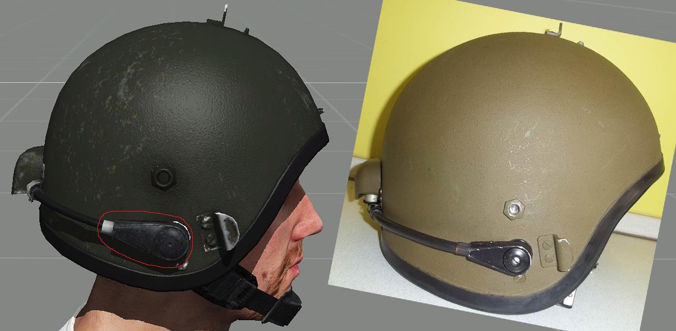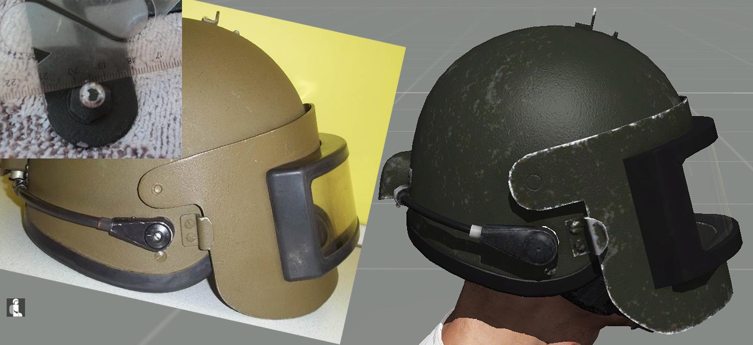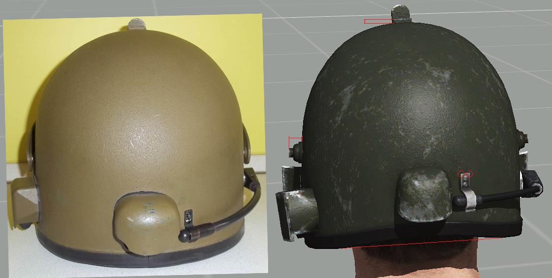 | Description | Доброго времени суток! На 1ой картинке: кожух переключателя режимов работы не имеет скруглений, также шляпка винта должна быть выпуклой. На 2ой картинке: у оригинального кожуха сужения снизу ярко выражены. Также отсутствие резинки вокруг кожуха. На 3ей картинке: Слишком толстая боковая стенка кожуха переключателя. Сам переключатель, мал, но это, скорее всего потому, что сам кожух довольно большой (это будет очень заметно на общих ракурсах, приведенных ниже). На 4ой картинке: Нужны более ярко выраженные углы на передней и задней стенках кожуха переключателя. Отсутствие решетки на самом переключателе. На 5ой картинке: Верхняя стенка кожуха штекера должна быть под прямым углом к стенке шлема. Задняя стенка кожуха (защита шнура) должна быть перпендикулярна горизонту. Также кожух должен иметь характерные вырезы снизу. На 6ой картинке: Кожух штекера довольно широкий на оригинальном шлеме. Задняя стенка кожуха хорошо скруглена. Также отсутствие резинки вокруг кожуха. На 7ой картинке: Отсутствие штатной заглушки для разъема. Отсутствие мелких вырезов по бокам (попытка нарисовать схожую форму). Не хватает металлического блеска для разъема. На 8ой картинке: Слишком большие боковые фиксаторы. Фиксатор нижнего положения должен иметь более тупой угол. Кромка шлема в лобовой проекции имеет слишком большие углы по бокам, из за чего кромка на уровне бровей сужена и поднята высоко. Дырочки вентиляции на подбородке нужно подвинуть ближе друг к другу. На 9ой картинке: Фиксатор верхнего положения имеет немного большую высоту, чем у оригинала. У боковых фиксаторов необходимо округлить концы. Кромка шлема в лобовой проекции (вид сбоку). На 10ой картинке: Довольно крупный поворотный механизм микрофона. На 11ой картинке: Большая толщина верхнего фиксатора. Необходимо чуть-чуть сплющить купол шлема (чтобы был менее остроконечным). У фиксатора микрофона необходимо округлить концы. Слишком широкие крепления кронштейна по бокам (на виде сверху лучше это видно). Нижняя затылочная кромка шлема должна быть параллельной горизонту. На 12ой картинке: У верхнего фиксатора необходимо округлить концы. Головка микрофона должна быть чуть длиннее и тоньше. Как я понимаю, в RHS присутствует модель раннего “Алтына” (забрала), судя по профилю кронштейна, кончики забрала имеют характерный изгиб. Может быть, имеет смысл “осовременить” (выровнять) эти “уши”? Т.к. у старых забрал верхняя кромка в лобовой части имеет изгиб к верху (лишняя работа) - это будет видно на следующей картинке. На 13ой картинке: Защелка у верхнего фиксатора должна быть немного сплюснутой (менее острый угол). Отсутствие заклепочного соединения выше визора (на забрале). Окантовка бронестекла и само стекло должны быть более узкими. Также скругления нижней кромки забрала должны быть большего радиуса. Если оставлять характерный изгиб на “ушах” забрала, то верхнюю кромку шлема нужно изогнуть кверху. На 14ой и 15ой картинках: Толщина “уха” забрала должна быть поменьше (также присутствует пример “уха” с изгибом). Также забрало довольно большое по высоте. Заранее спасибо! | ||||||||||||
