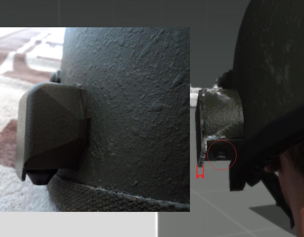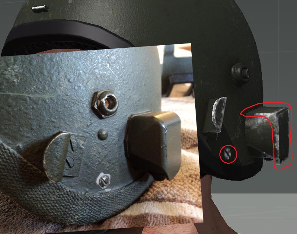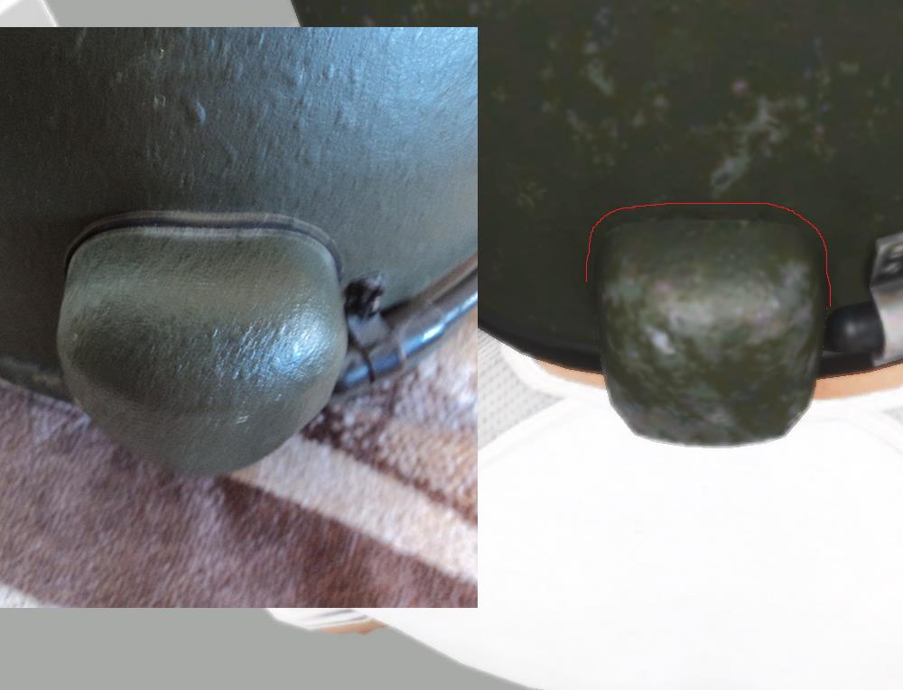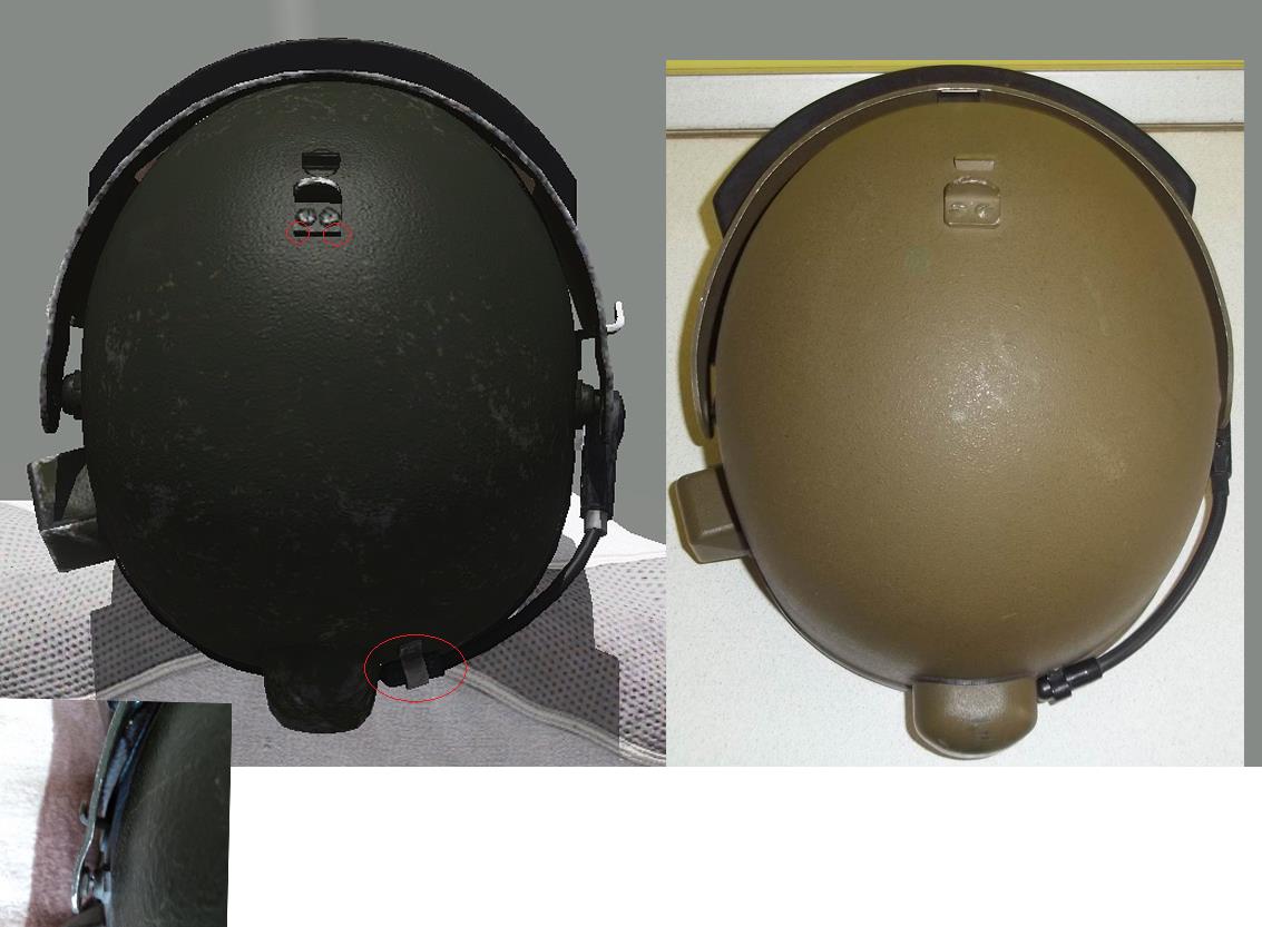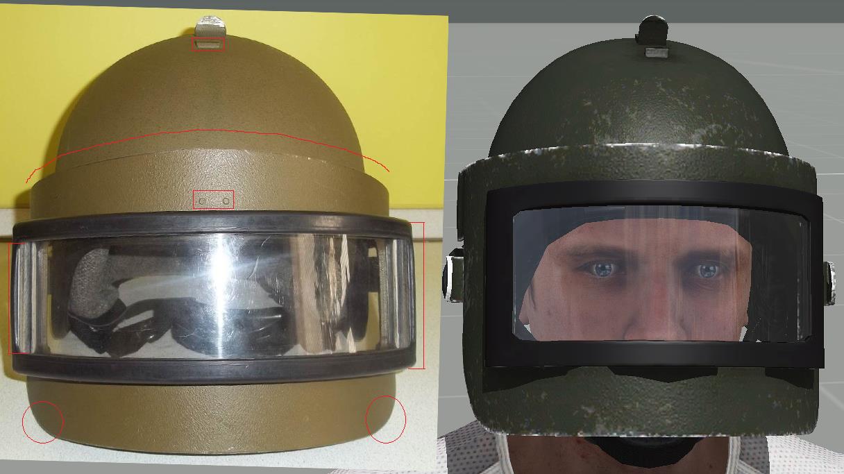 | Description | Доброго времени суток! На 1ой картинке: кожух переключателя режимов работы не имеет скруглений, также шляпка винта должна быть выпуклой. На 2ой картинке: у оригинального кожуха сужения снизу ярко выражены. Также отсутствие резинки вокруг кожуха. На 3ей картинке: Слишком толстая боковая стенка кожуха переключателя. Сам переключатель, мал, но это, скорее всего потому, что сам кожух довольно большой (это будет очень заметно на общих ракурсах, приведенных ниже). На 4ой картинке: Нужны более ярко выраженные углы на передней и задней стенках кожуха переключателя. Отсутствие решетки на самом переключателе. На 5ой картинке: Верхняя стенка кожуха штекера должна быть под прямым углом к стенке шлема. Задняя стенка кожуха (защита шнура) должна быть перпендикулярна горизонту. Также кожух должен иметь характерные вырезы снизу. На 6ой картинке: Кожух штекера довольно широкий на оригинальном шлеме. Задняя стенка кожуха хорошо скруглена. Также отсутствие резинки вокруг кожуха. На 7ой картинке: Отсутствие штатной заглушки для разъема. Отсутствие мелких вырезов по бокам (попытка нарисовать схожую форму). Не хватает металлического блеска для разъема. На 8ой картинке: Слишком большие боковые фиксаторы. Фиксатор нижнего положения должен иметь более тупой угол. Кромка шлема в лобовой проекции имеет слишком большие углы по бокам, из за чего кромка на уровне бровей сужена и поднята высоко. Дырочки вентиляции на подбородке нужно подвинуть ближе друг к другу. На 9ой картинке: Фиксатор верхнего положения имеет немного большую высоту, чем у оригинала. У боковых фиксаторов необходимо округлить концы. Кромка шлема в лобовой проекции (вид сбоку). На 10ой картинке: Довольно крупный поворотный механизм микрофона. На 11ой картинке: Большая толщина верхнего фиксатора. Необходимо чуть-чуть сплющить купол шлема (чтобы был менее остроконечным). У фиксатора микрофона необходимо округлить концы. Слишком широкие крепления кронштейна по бокам (на виде сверху лучше это видно). Нижняя затылочная кромка шлема должна быть параллельной горизонту. На 12ой картинке: У верхнего фиксатора необходимо округлить концы. Головка микрофона должна быть чуть длиннее и тоньше. Как я понимаю, в RHS присутствует модель раннего “Алтына” (забрала), судя по профилю кронштейна, кончики забрала имеют характерный изгиб. Может быть, имеет смысл “осовременить” (выровнять) эти “уши”? Т.к. у старых забрал верхняя кромка в лобовой части имеет изгиб к верху (лишняя работа) - это будет видно на следующей картинке. На 13ой картинке: Защелка у верхнего фиксатора должна быть немного сплюснутой (менее острый угол). Отсутствие заклепочного соединения выше визора (на забрале). Окантовка бронестекла и само стекло должны быть более узкими. Также скругления нижней кромки забрала должны быть большего радиуса. Если оставлять характерный изгиб на “ушах” забрала, то верхнюю кромку шлема нужно изогнуть кверху. На 14ой и 15ой картинках: Толщина “уха” забрала должна быть поменьше (также присутствует пример “уха” с изгибом). Также забрало довольно большое по высоте. Заранее спасибо! | ||||||||||||