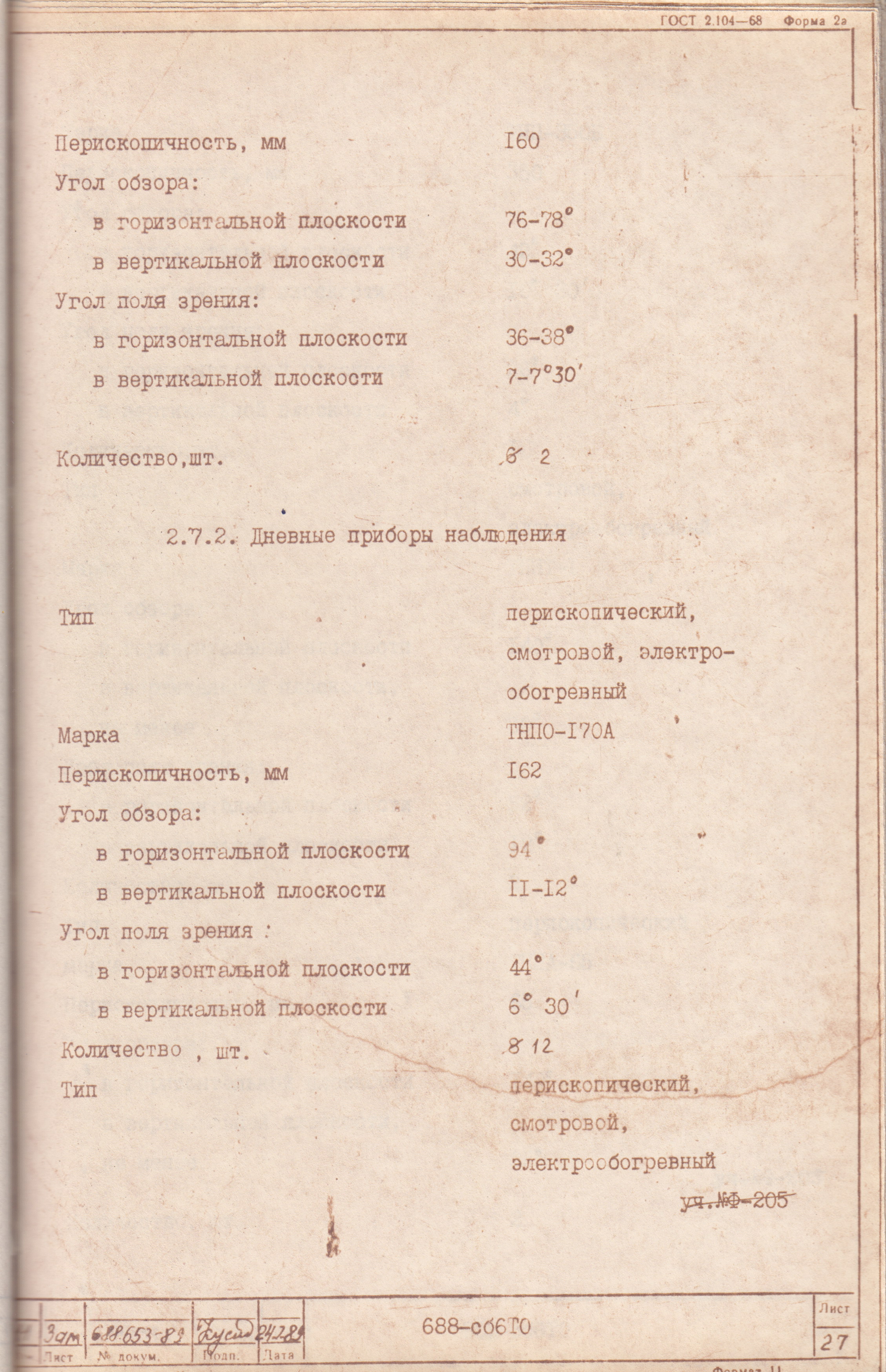 Прибор называется ТНПЗВЭ01(01): его поле зрения можно найти на этой странице: http://lzos.com/perescop.htm [^] https://cyberpedia.su/9xdf3d.html [^] -угол поля зрения в вертикальной плоскости: 8 градусов; -угол поля зрения в горизонтальной плоскости: 38 градусов; -увеличение: 1х Угол поля зрения в IRL у данного прицела может быть увеличен по вертикали до 32 градусов и по горизонтали до 78 град при движении глаз и головы, с помощью заглядывания за край изображения. Там же картинка, на которой изображена у нижнего левого предмета прицельная сетка и сам прицел справа: http://lzos.com/perescop.htm [^] |
