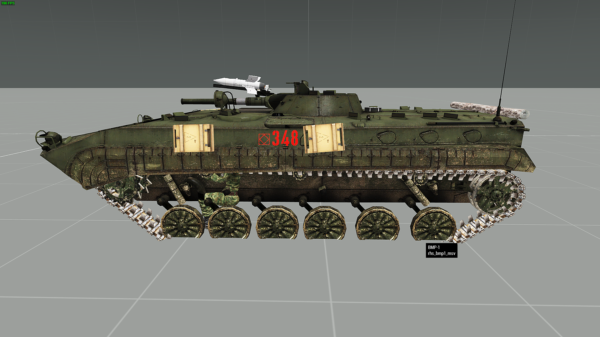 | Description | The commander of BMP-1 (All of them) is visible through the armor of the vehicle. He is extending out of the model. |