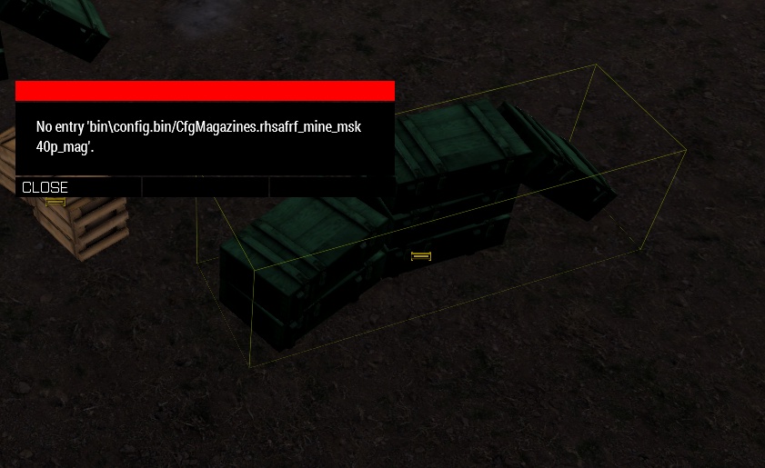 | Summary | 0003628: Error: No entry 'bin\config.bin/cfgMagazines.rhsafrf_mine_msk40p_mag' |