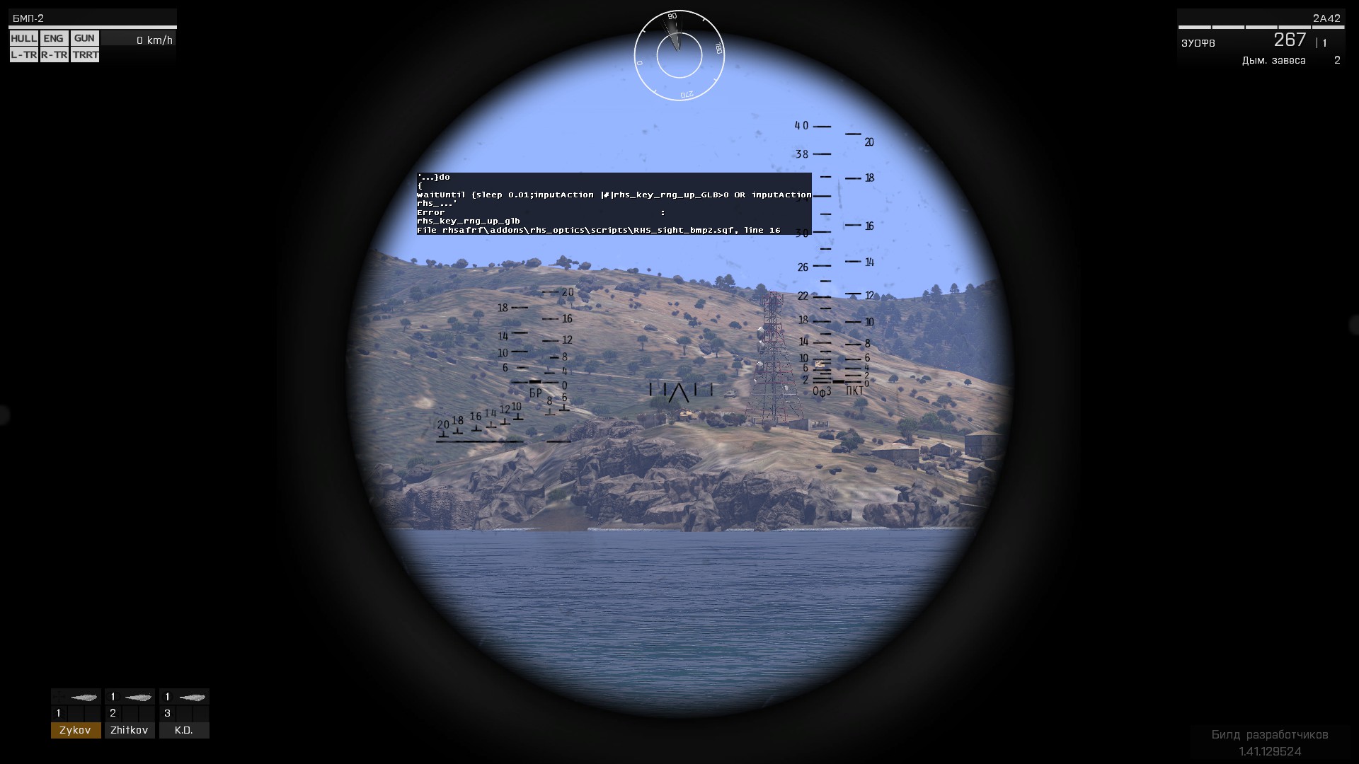 | Description | Прицел БМП-2 после обновления перестал работать как положено и выдаёт ошибку скрипта, см. скриншот. |