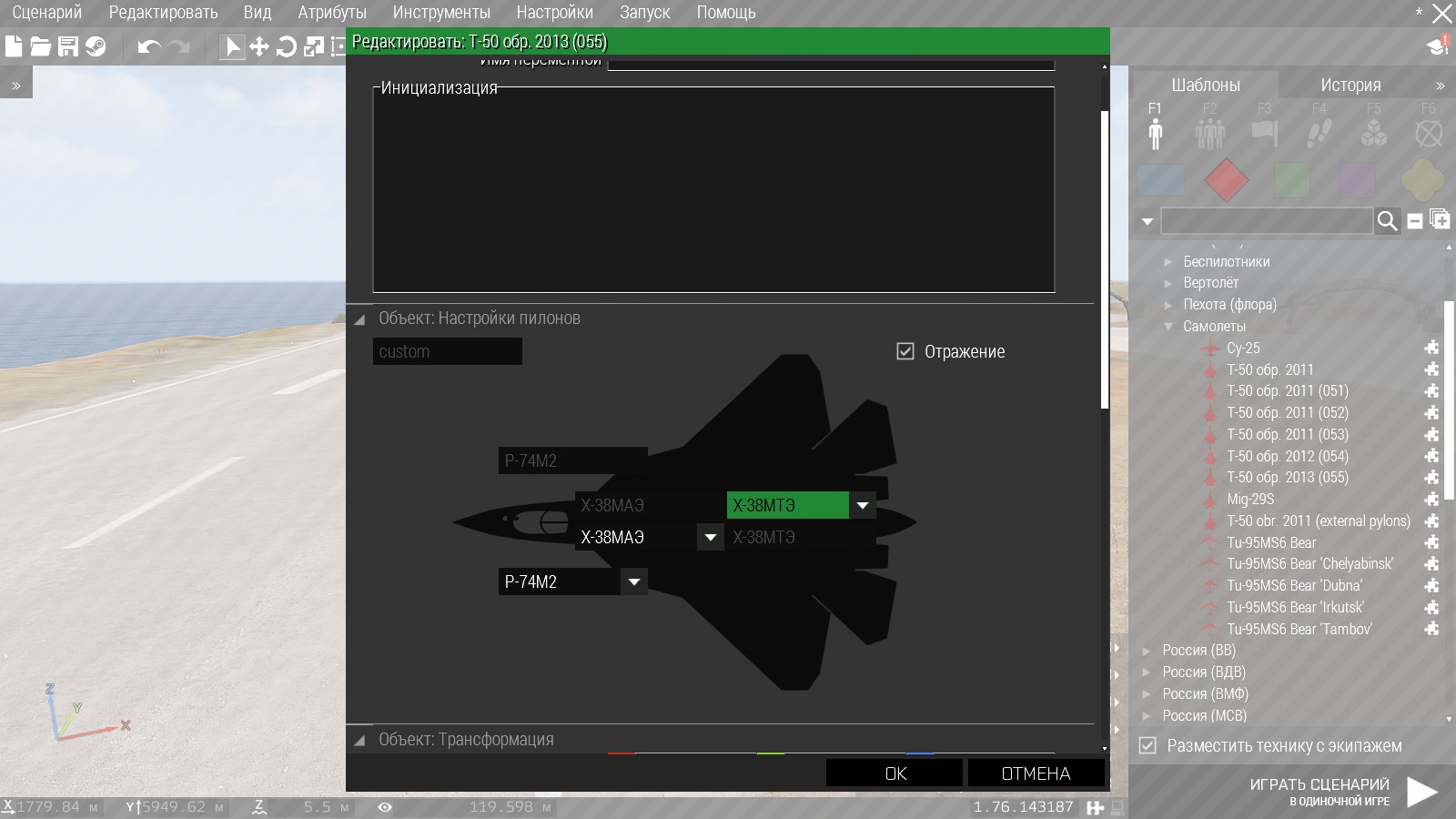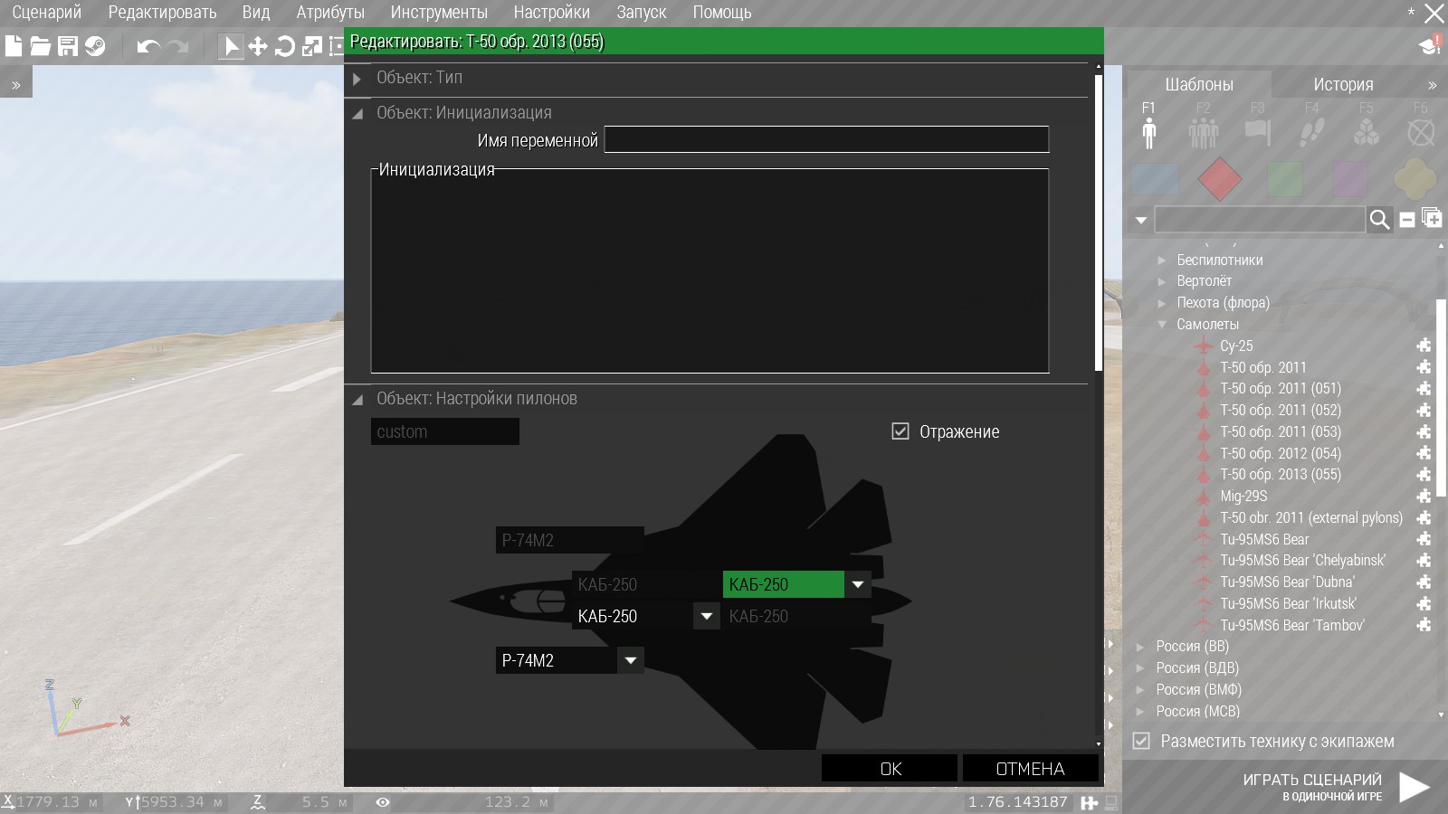 | Steps To Reproduce | Загрузить через редактор на пилоны Т 50 данные ракеты и бомбы. | ||||||||||||