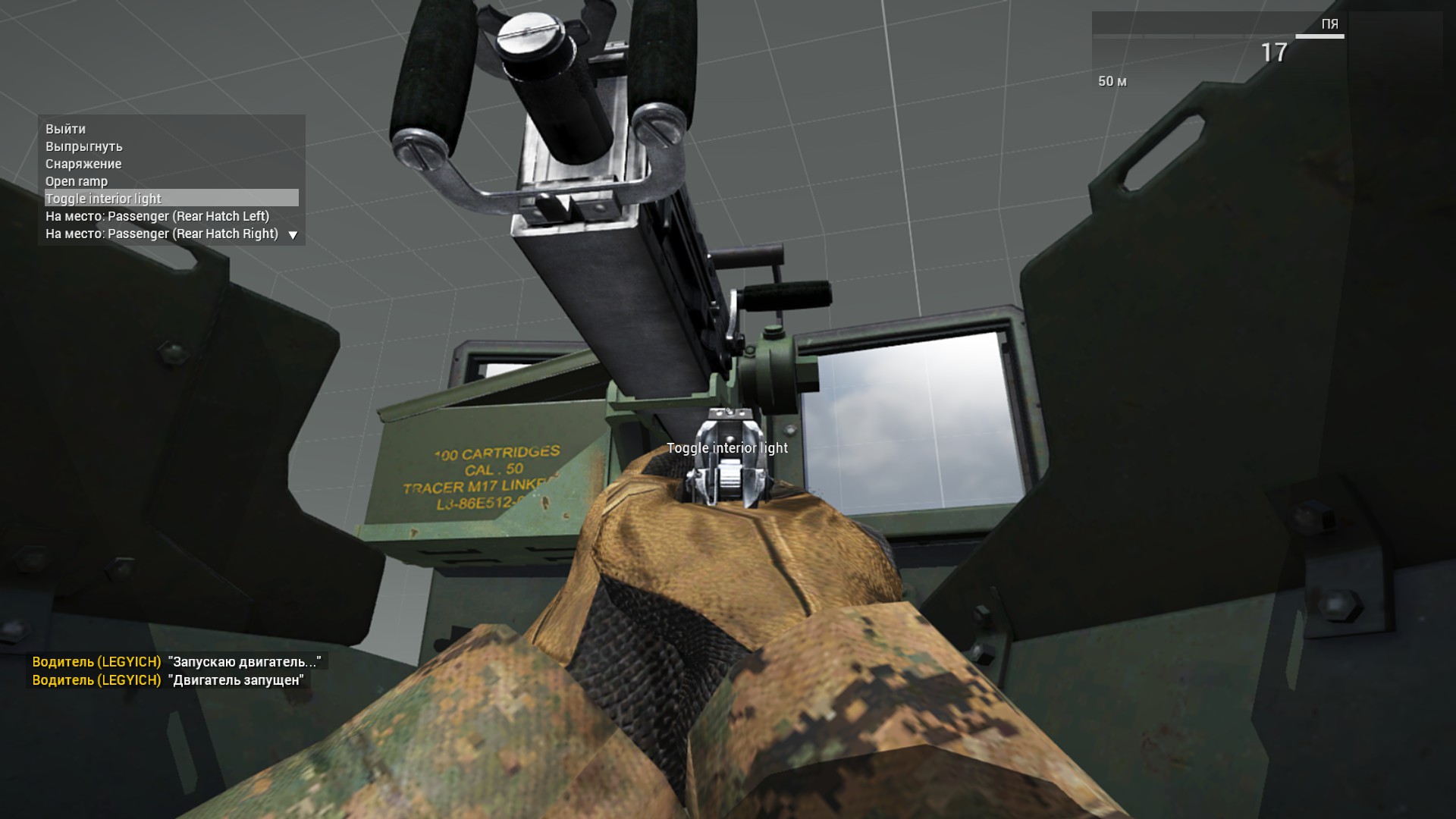 and driver M113 if press V doesn't see window - his eye forward |