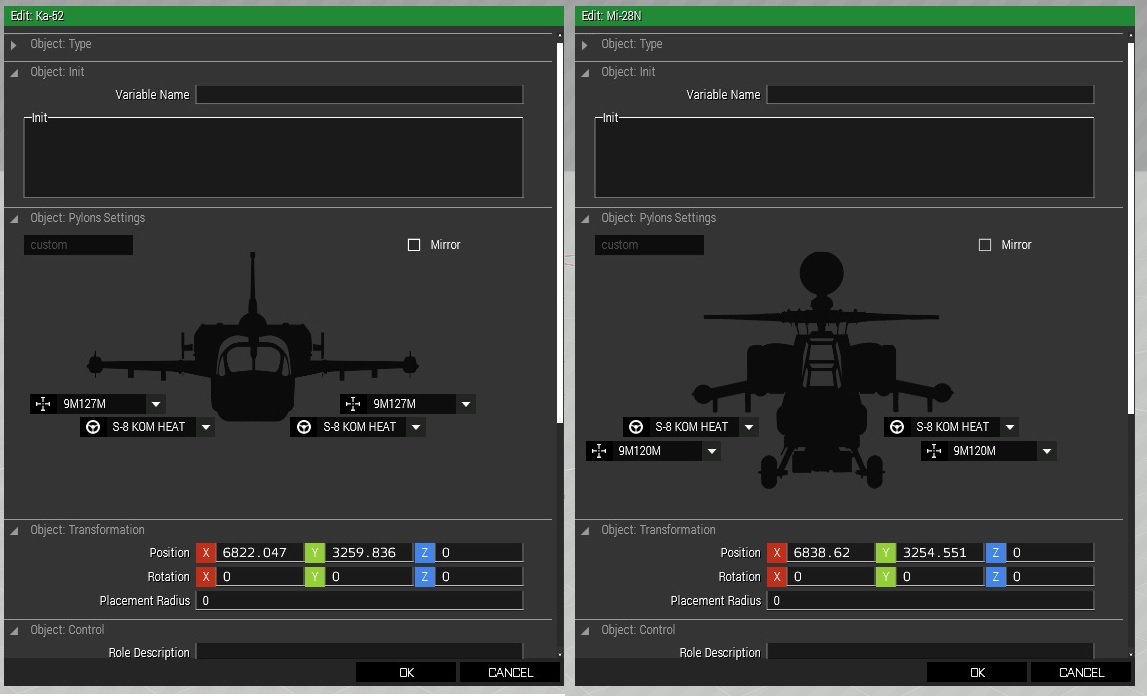 DescriptionMi-28 and Ka-52 are currently missing the option to switch from different pylon presets.