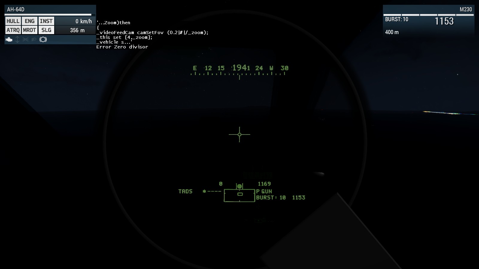 | Description | When switching to optics (RMB) an back with IHADSS and thermals engaged. And one of the MFD set to gunner camera view.