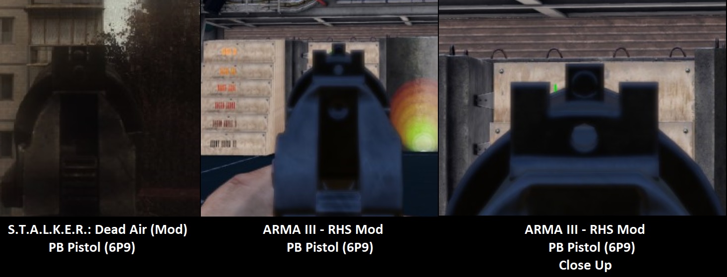 | Description | The iron sights of the 6P9 PB pistol seem to be misaligned. Currently the bullets land slightly under the middle part of the iron sights. See attached image. | ||||||||||||