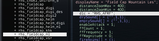 | Description | If we look at configs, we can see that the caps belong to the DLC, but in the screenshot they belong to RHS_AFRF, and another unclear situation: These caps are made for US Army. | ||||||||