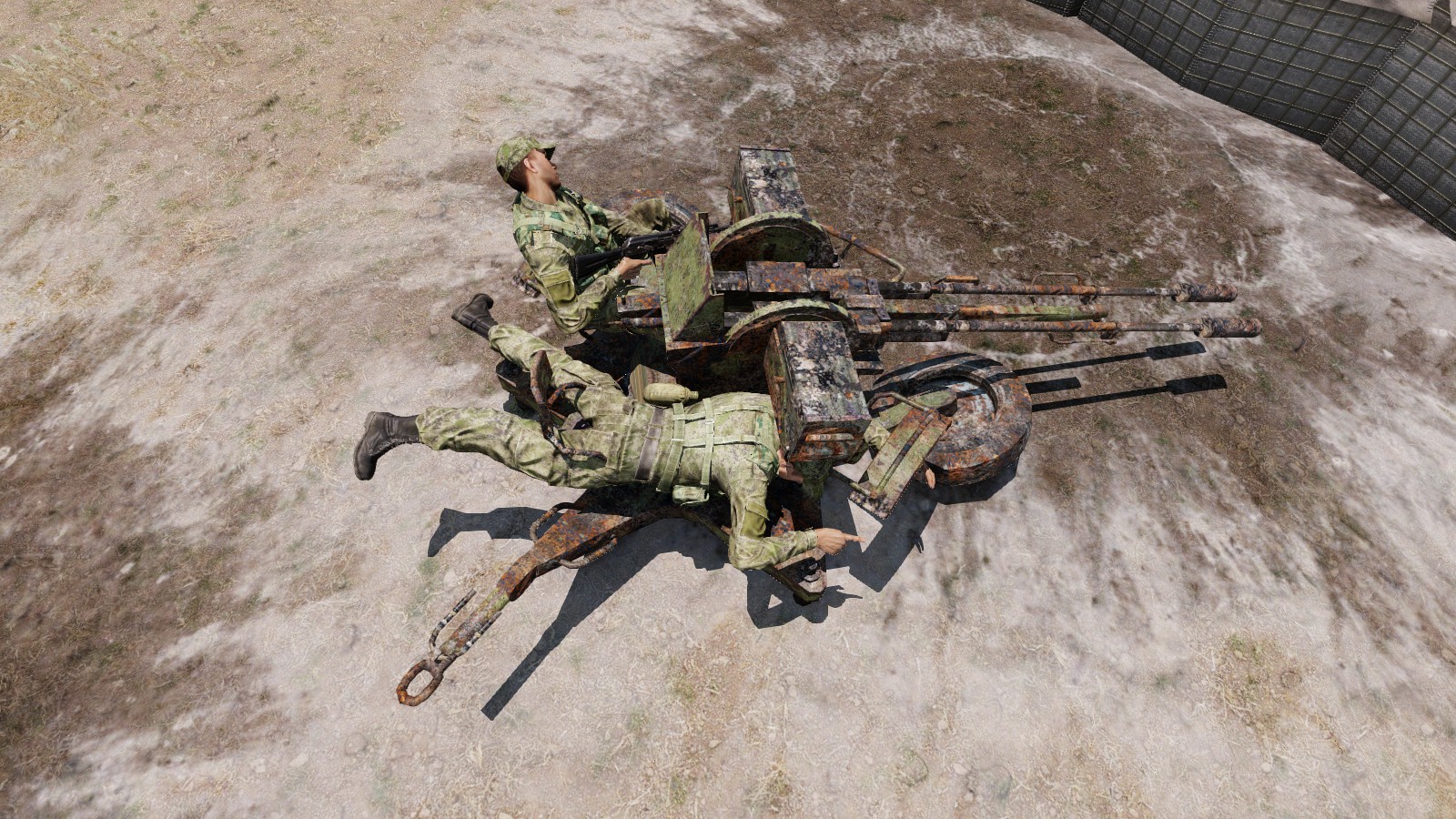 | Description | One of the crew has a death animation that does not fit in with the ZU-23. |