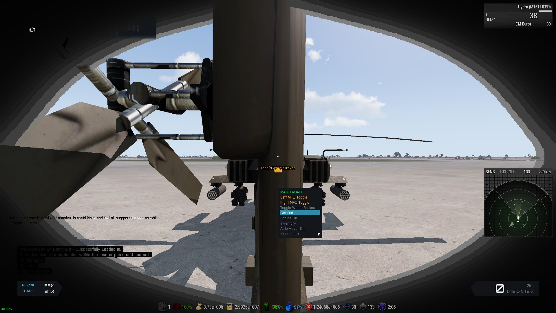 | Description | I cant get in ah64 or ah1z. I t freezes to a tunnel vision or all black screen. I get message No entry 'bin\config.bin/RsclnGameUI/RHSUSF_RscUnitlnfoAir_AH64/CA_VehicleTogglesBackground.type'. | ||||||||