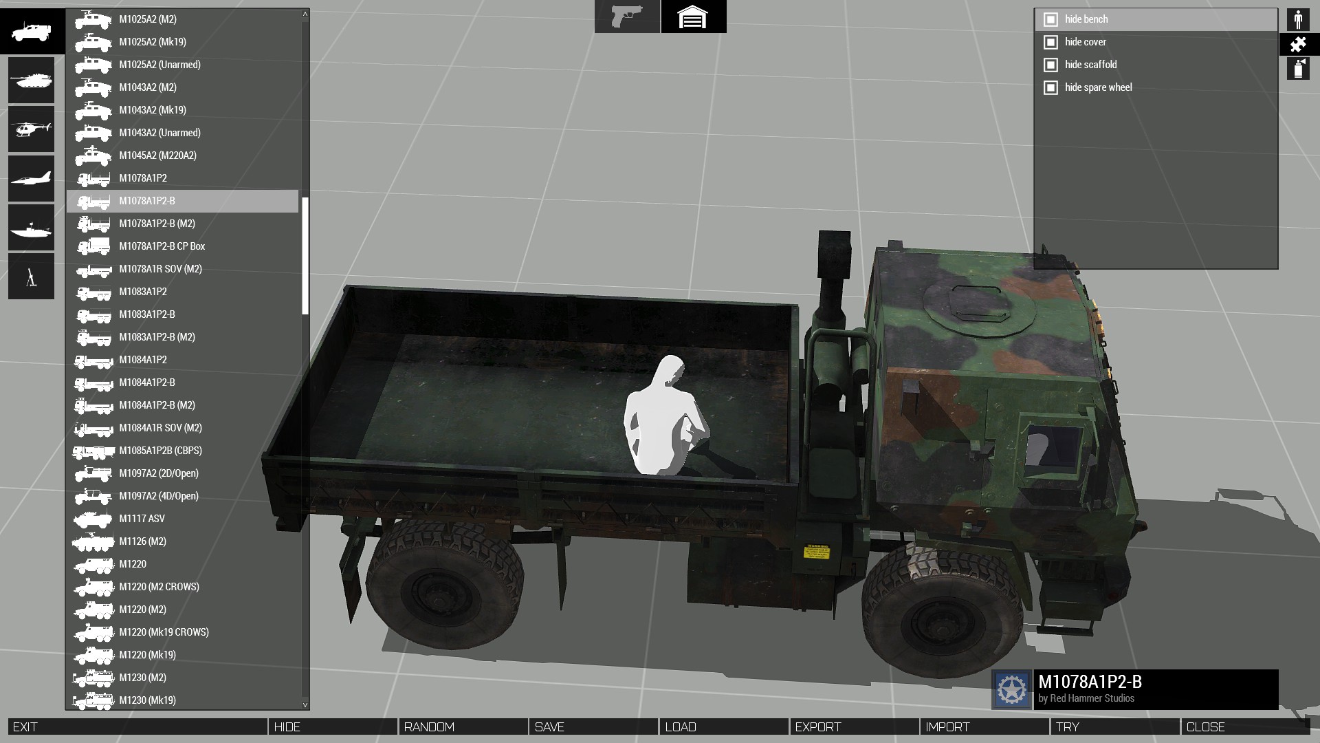 | Description | There are two issues The unarmed versions(including unarmored and armored cabins) Passenger seat 3 is still using his seat in the back even he stilling a floating a already remove bench and other seat passengers was remove fine The armed versions(Both M1083 and M1078) All passengers in back of track are floating even the bench is already remove This issues is present both stable and in dev and it happen in VR | ||||||||