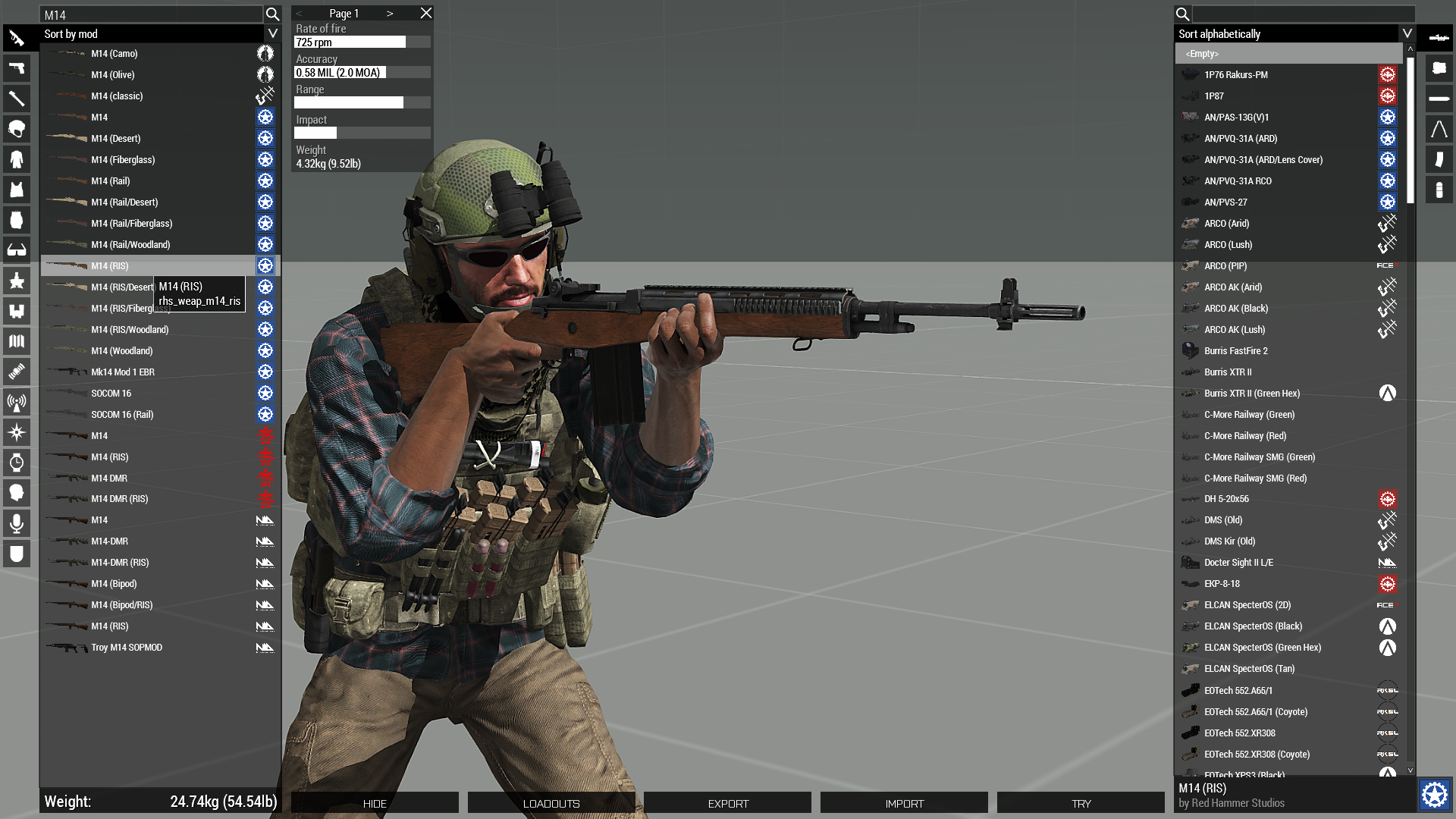 | Steps To Reproduce | Select any M14 variant with the full RIS, ensure no additional muzzle device is selected, and go into first person/aim down sights to see missing elements. |