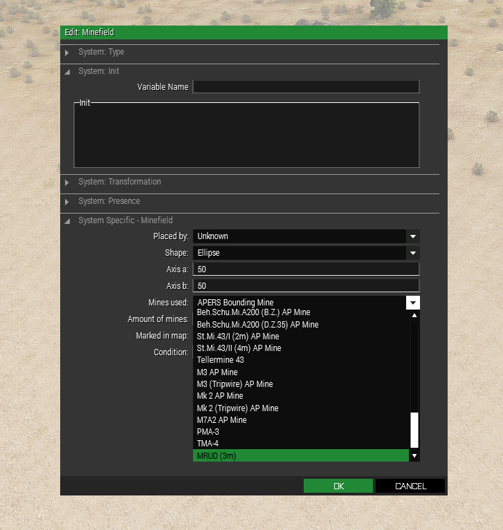 | Description | The SM-320 and OZM mines are not in the list for the Arma 3 mine module while the majority of other RHS mines are. |