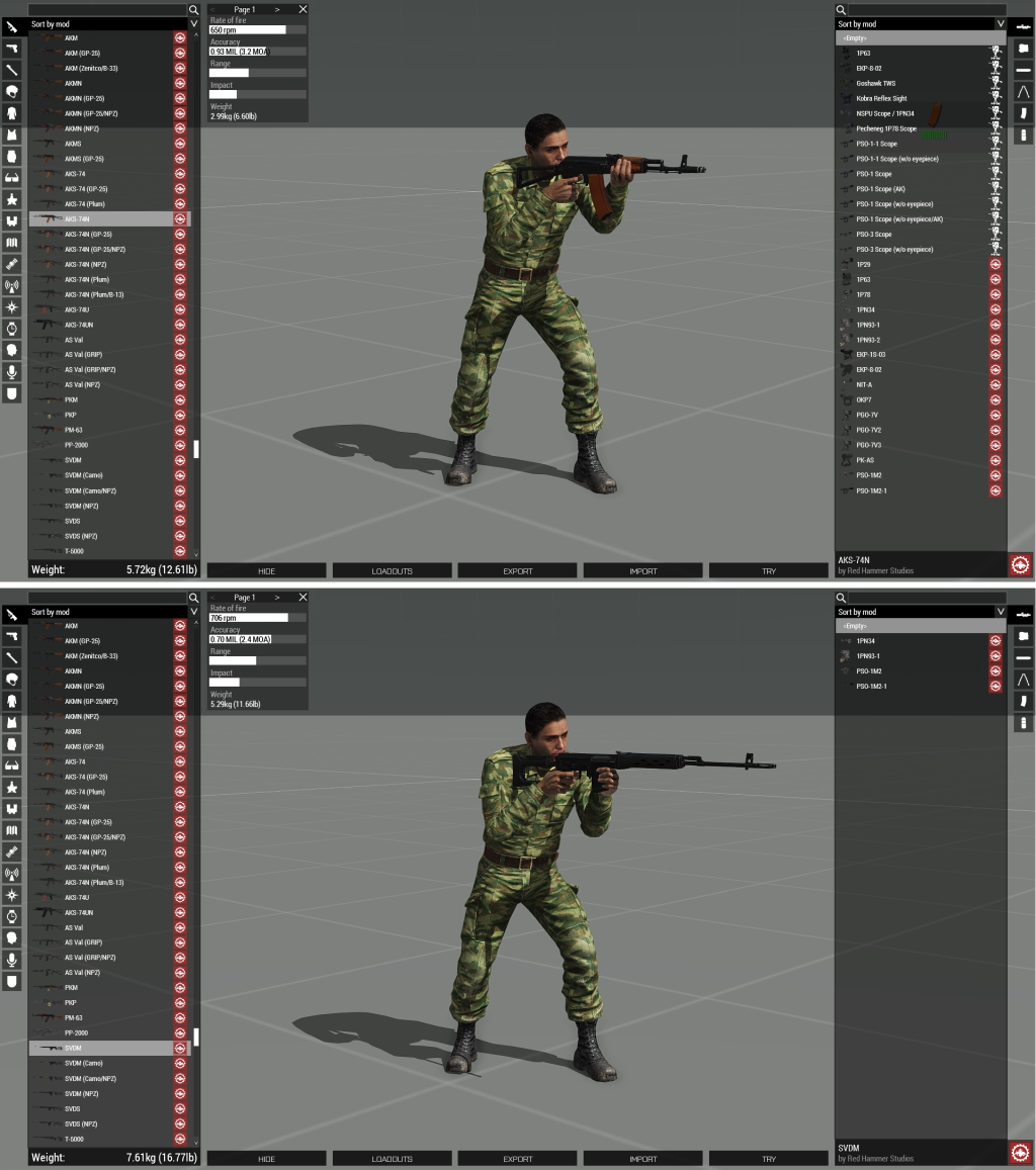 | Description | All weapons with Warsaw Pact rail, AKM to AK-105, AS Val, VSS Vintorez and PKP have 16 sights/scopes available from the AFRF mod alone plus others from other mods like CUP. The SVDM/SVDS can only use 4 of those. | ||||||||