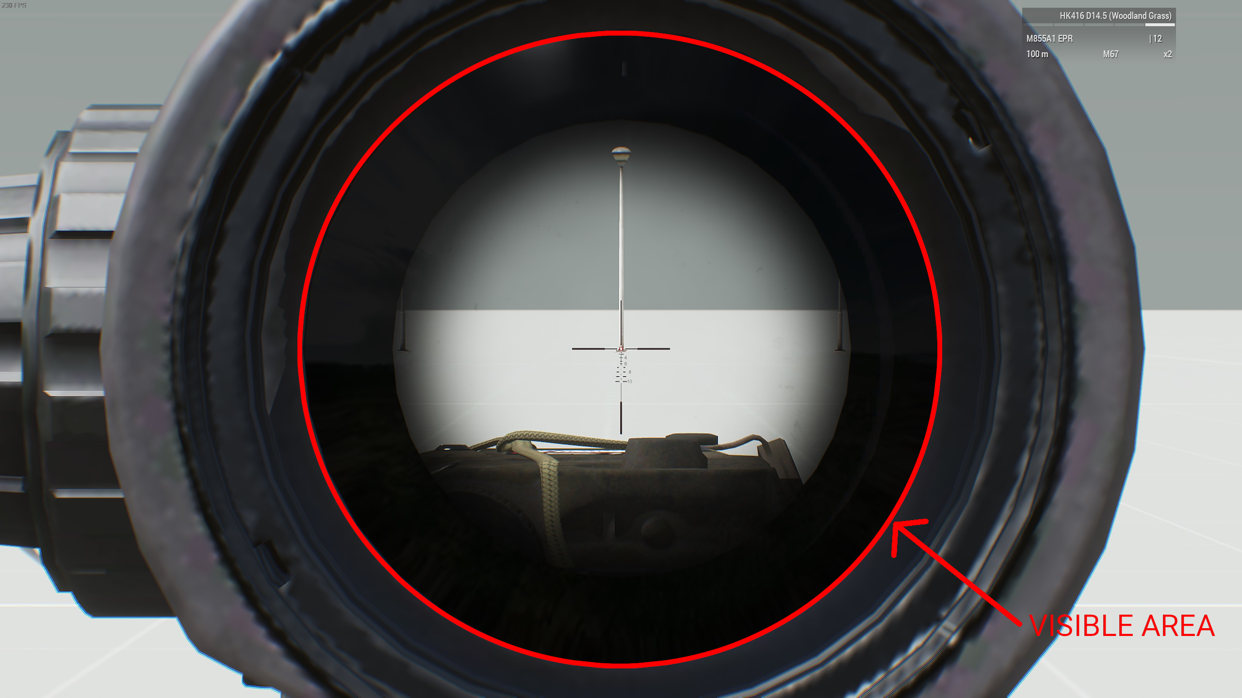 | Description | Hello, I'm aware there were a few previous bugs on this issue ex: http://feedback.rhsmods.org/view.php?id=5640 [^] I'd like to address this in a way which might work for the users and RHS. Currently the RHS SU-230 has a 12 degree FoV. In reality, the optic FoV is much wider. In Arma, due to engine limitations I understand it is difficult to emulate the wide 24 degree FoV of the Elcan. One way to partially resolve this issue is to adjust the 3d model of the RHS SU-230. I have attached an example image [1] which shows the real Elcan usable area on the ocular lens. Removing the black area inside the example image and reducing the scale of the scope shadow would go a long way to rectify this issue. It would only increase the FoV to 18 degress, but shouldn't require any strange hacks. I'd like to note on the real Elcan, the interior of the tube, which you have simulated here with the black ring, is only visible at extreme viewing angles of the eye box when your about to lose total visibility down the optic. I've provided an example of the 1.5-6 Elcan on 1.5x power (with a FoV of 16 degrees) [2]. This has a narrower FoV than the SU-230, but would match up to what we have in the game with the ocular black ring/scope shadow removed. After removing or scaling down the black ring from the model, handling of the eyebox shifting due to scope movement could be handled similar to the RHS PK-AS. I can provide more images of the 1.5-6 Elcan if examples are required. Any interest in modeling it? Thanks! [1] https://media.discordapp.net/attachments/707422214730940467/718743289959940126/rhs14.jpg [^] [2] https://cdn.discordapp.com/attachments/707422214730940467/718742706838306866/elcan_156.jpg [^] | ||||||||