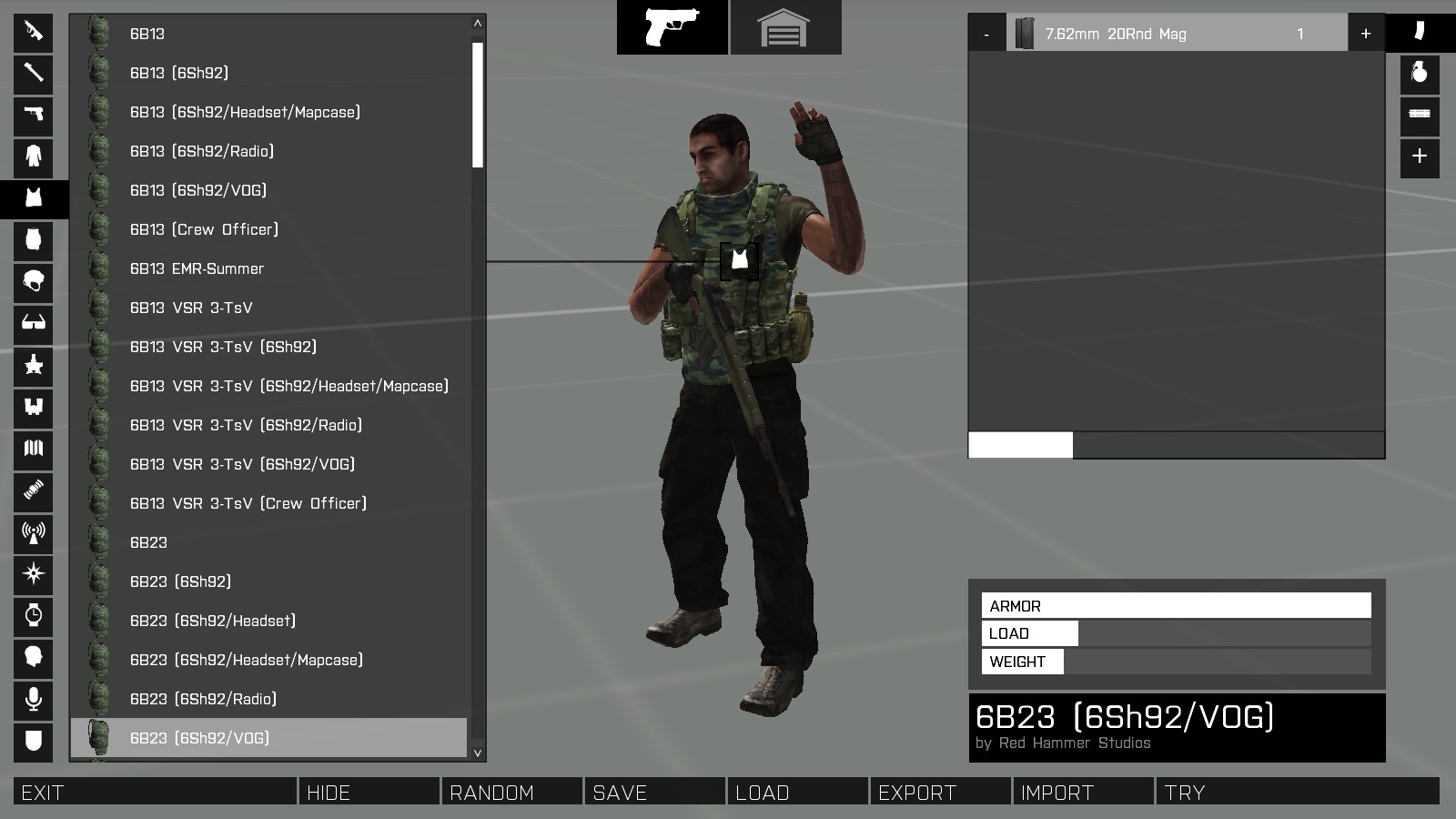 | Description | The six variations of the 6B23 vest that have VOGS (see below) seem to have an anomalously high amount of protection, as can be seen via the statistics bar in the arsenal where the armour bar is full (in contrast to all the other 6B23 variations. Vests affected are: 6B23 (6Sh92/VOG) 6B23 (6Sh92/VOG/Headest) 6B23 EMR-Summer (6Sh92/VOG) 6B23 EMR-Summer (6Sh92/VOG/Headest) 6B23 Mountain Les (6Sh92/VOG) 6B23 Mountain Les (6Sh92/VOG/Headest) | ||||||||||||