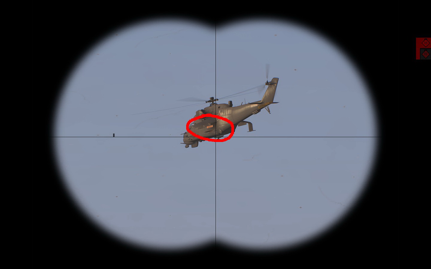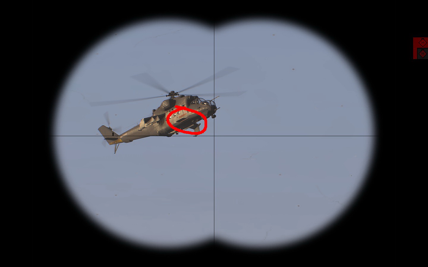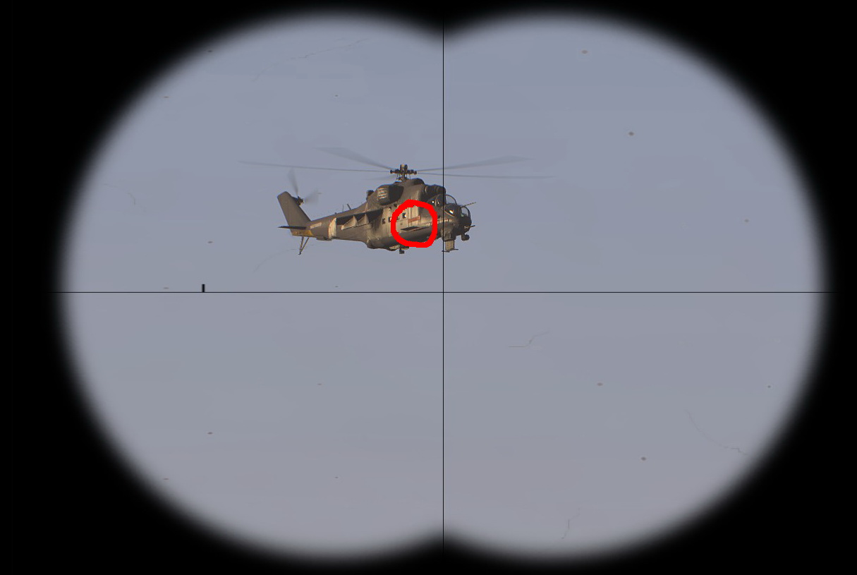 | Description | На расстоянии 1 км и более, при осмотре из бинокля или любого другого оптического прибора, на вертолетах Ми-24 сквозь текстуры бортов видны посадочные полки в десантном отделении | ||||||||