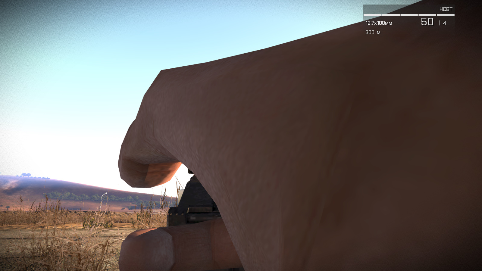 | Description | Когда станковый пулёмёт НСВТ стреляет по воздушным целям, прицел закрывает рука стрелка. |